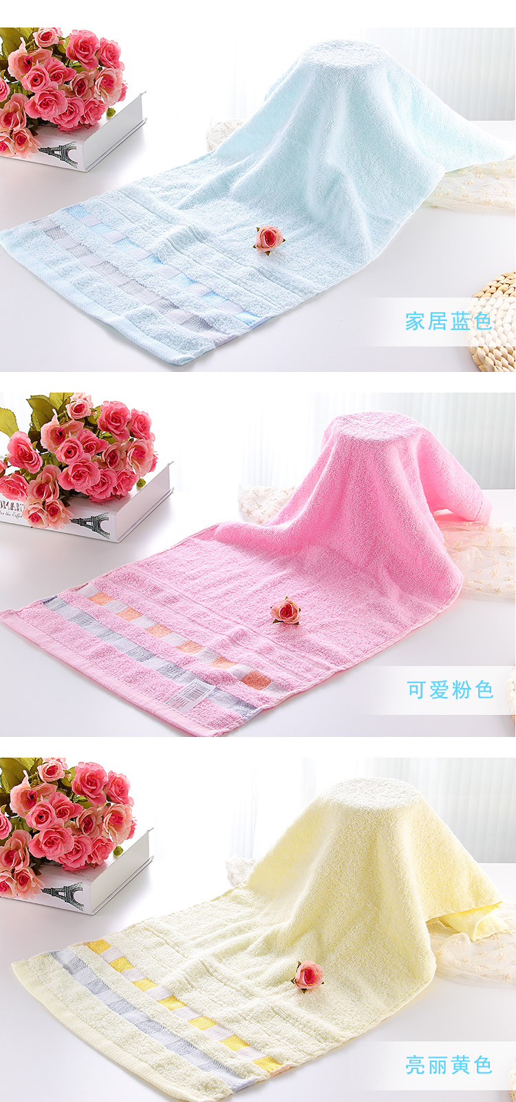 「买1送1!到手两条」简约加厚纯棉毛巾 成人情侣擦脸巾双面柔软吸水居家日用布艺洗脸面巾