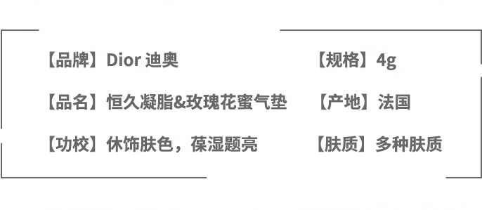 【品名】Dior迪奥凝脂恒久粉底气垫4g/花蜜玫瑰气垫BB4g提亮