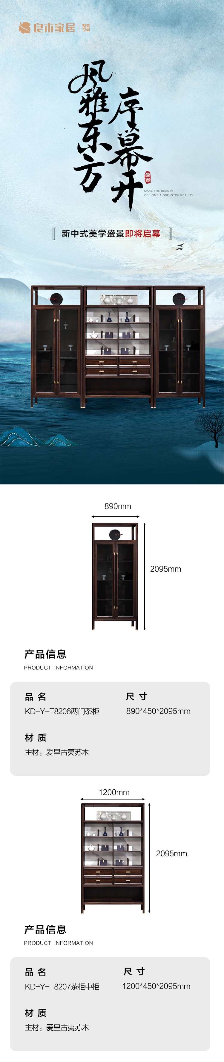 【新中式-中茶柜KD-Y-T8207】黑檀/客厅/茶室/茶柜