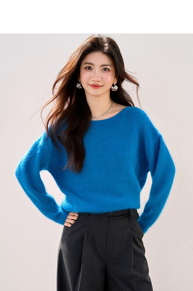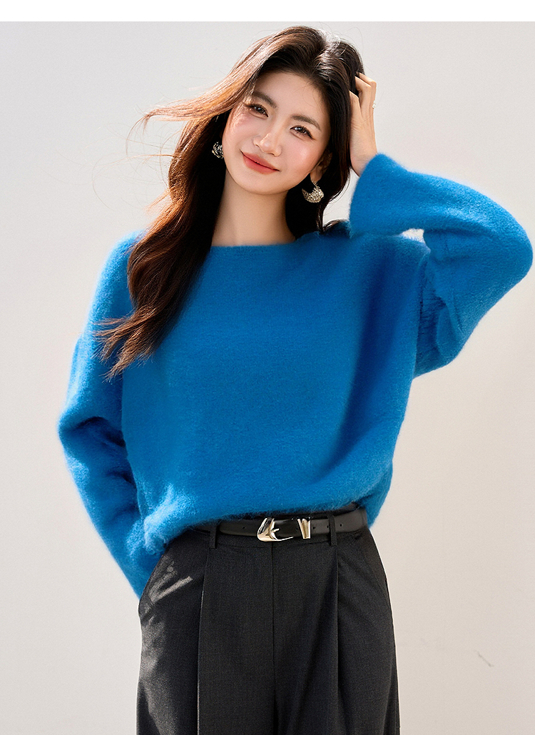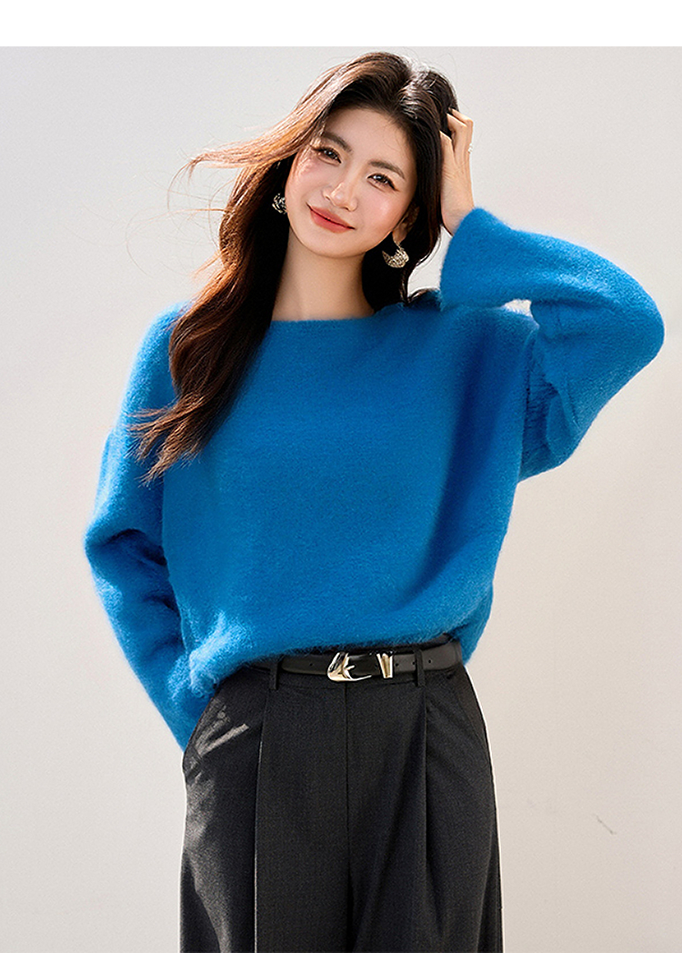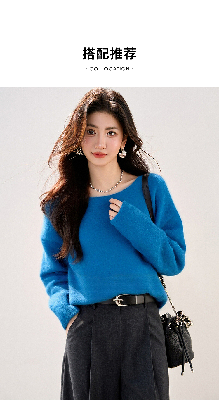 西遇法式软糯套头毛衣女2026年春季新款蓝色慵懒温柔宽松内搭上衣SS060049