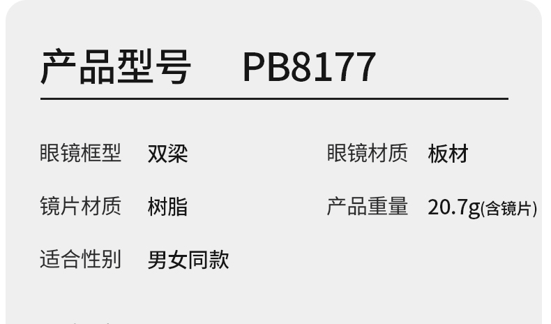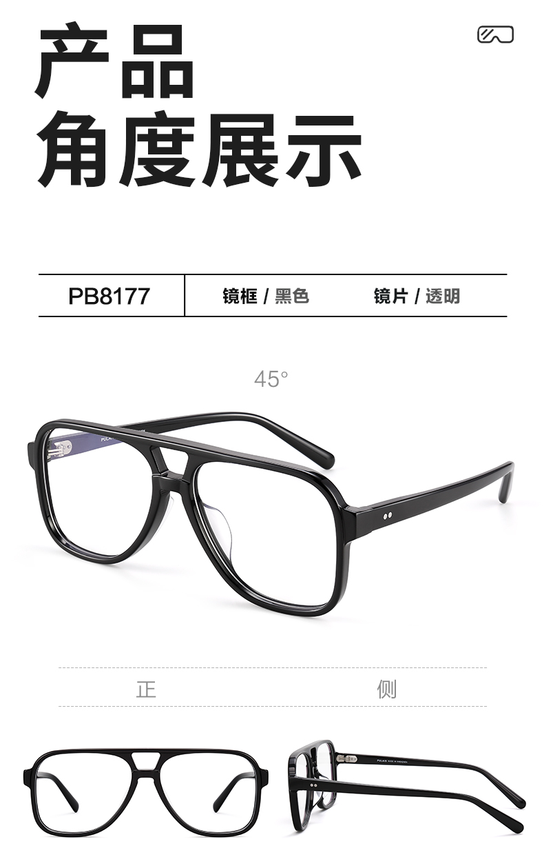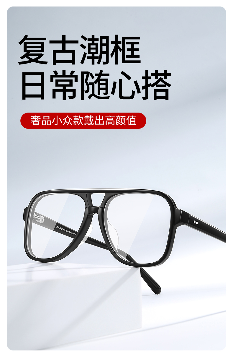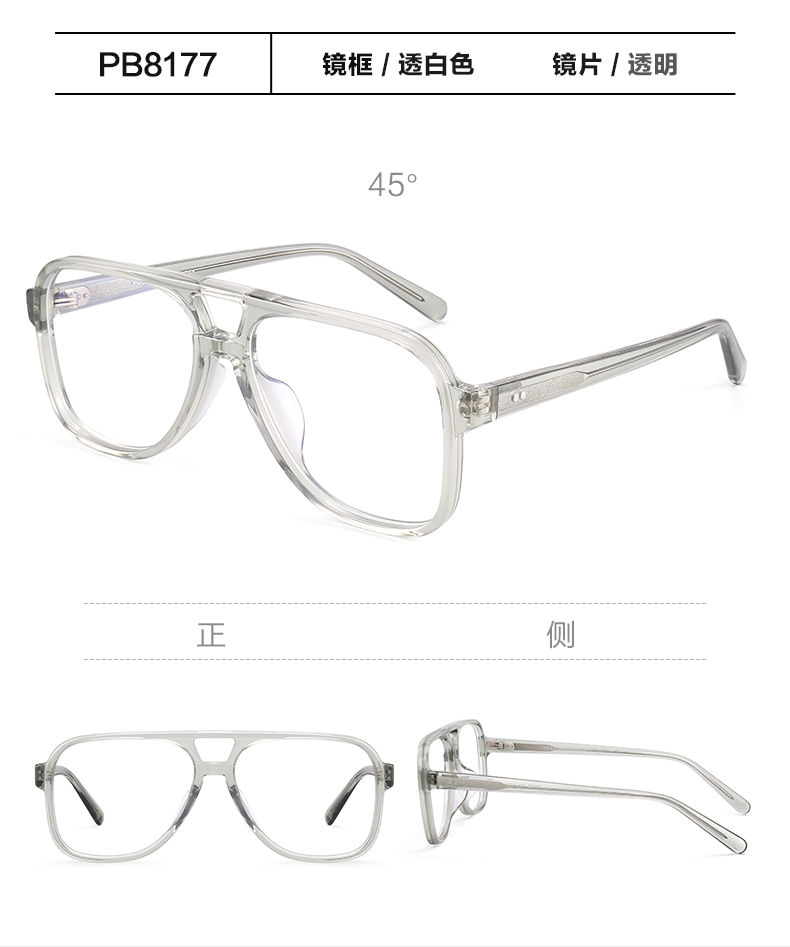 普莱斯光学镜框PB8177 复古双梁板材镜框 男女同款 四色可选