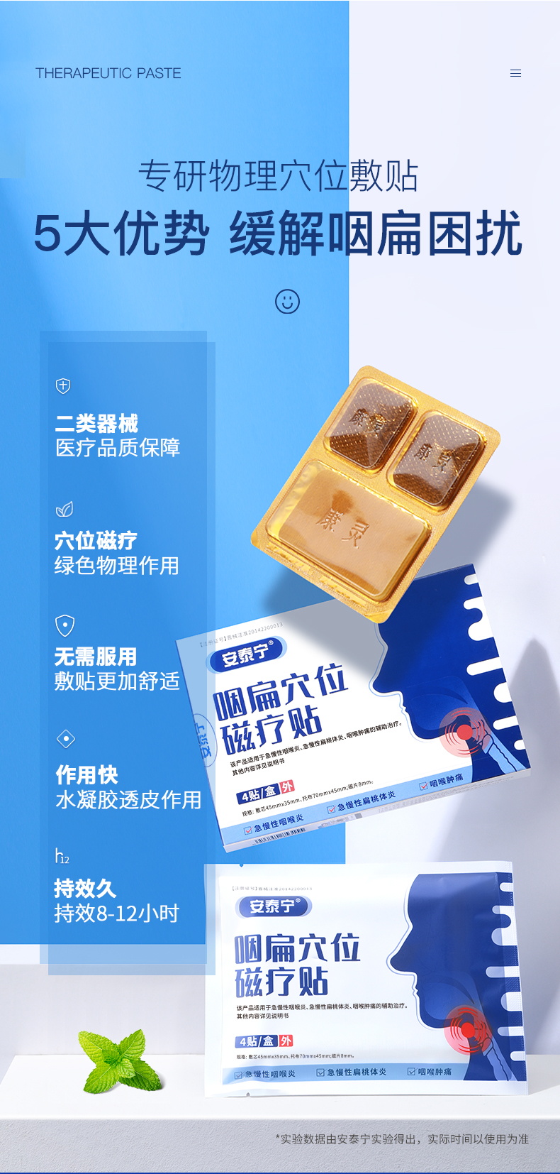 【会员专享特惠】安泰宁咽扁穴位磁疗贴喉咙发炎肿痛有痰异物感咽炎慢性咽喉炎(数量有限,抢完即止)