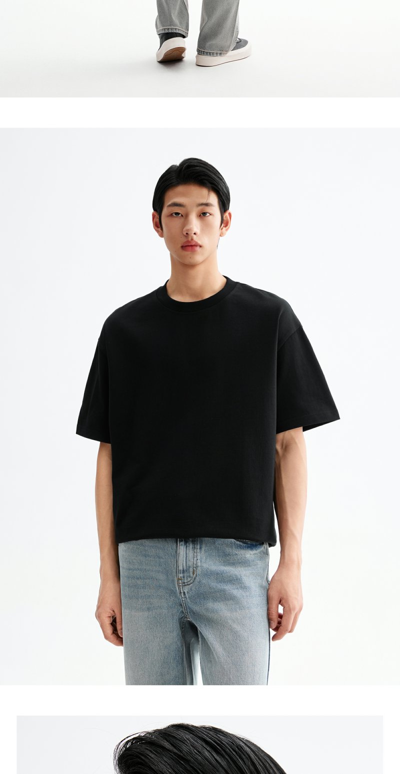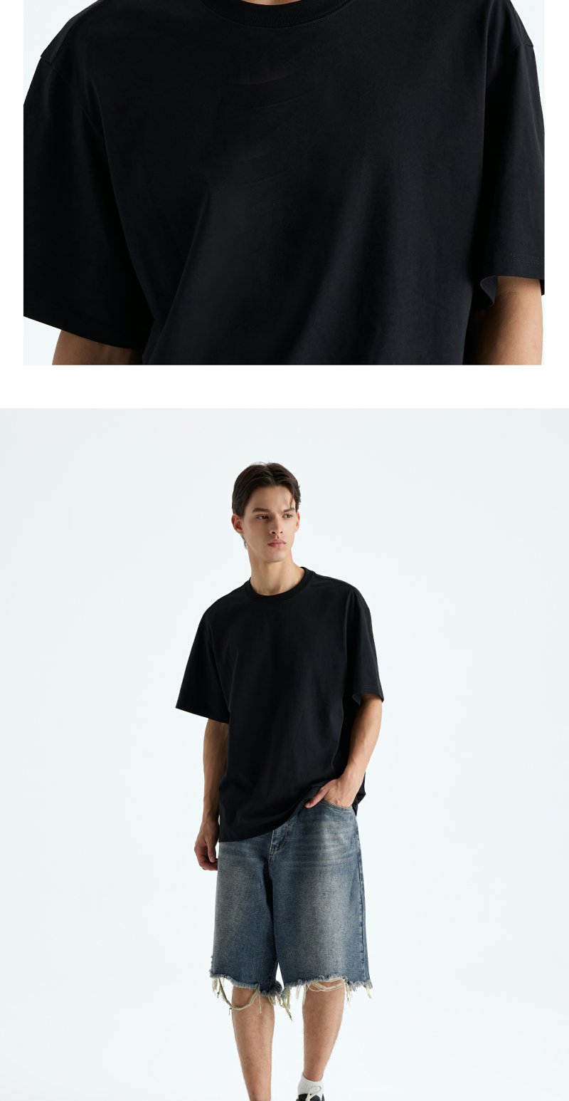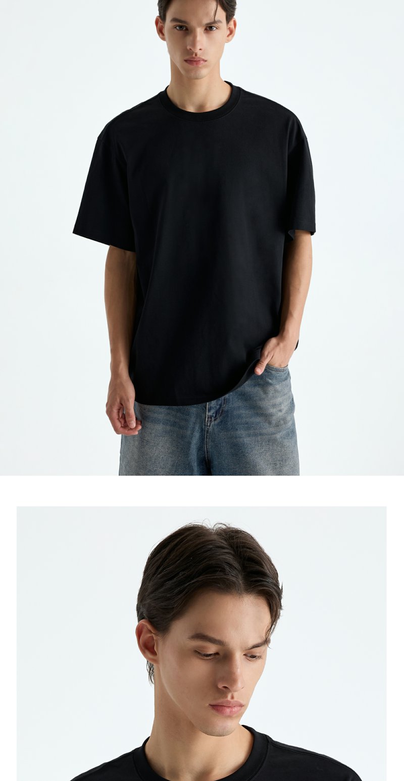 【全棉针织】CHINISM赤尘 重磅纯色短袖T恤男夏季宽松五分袖上衣