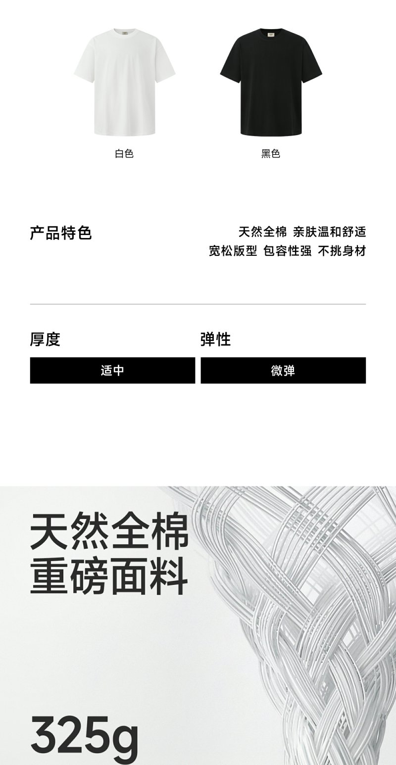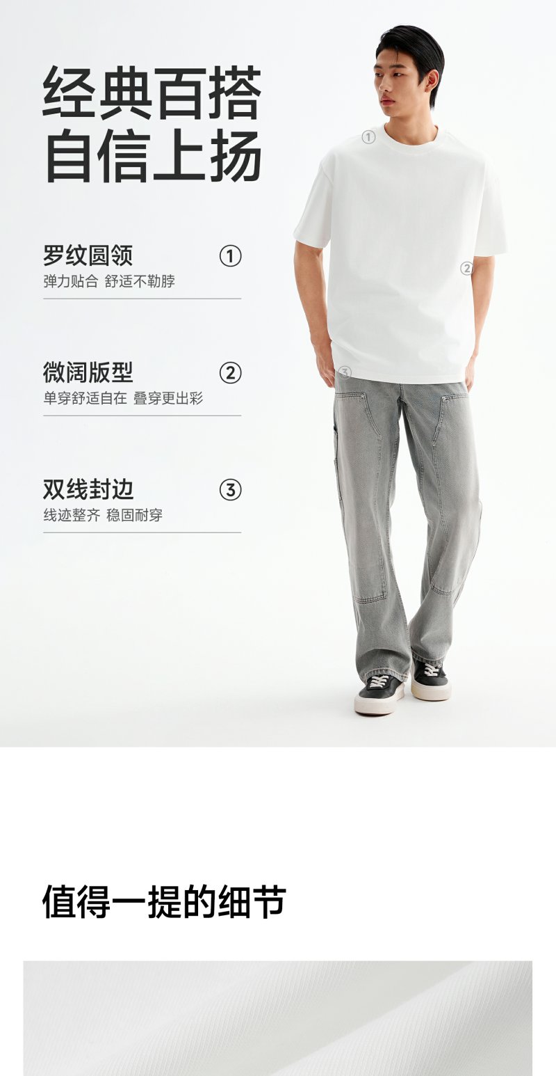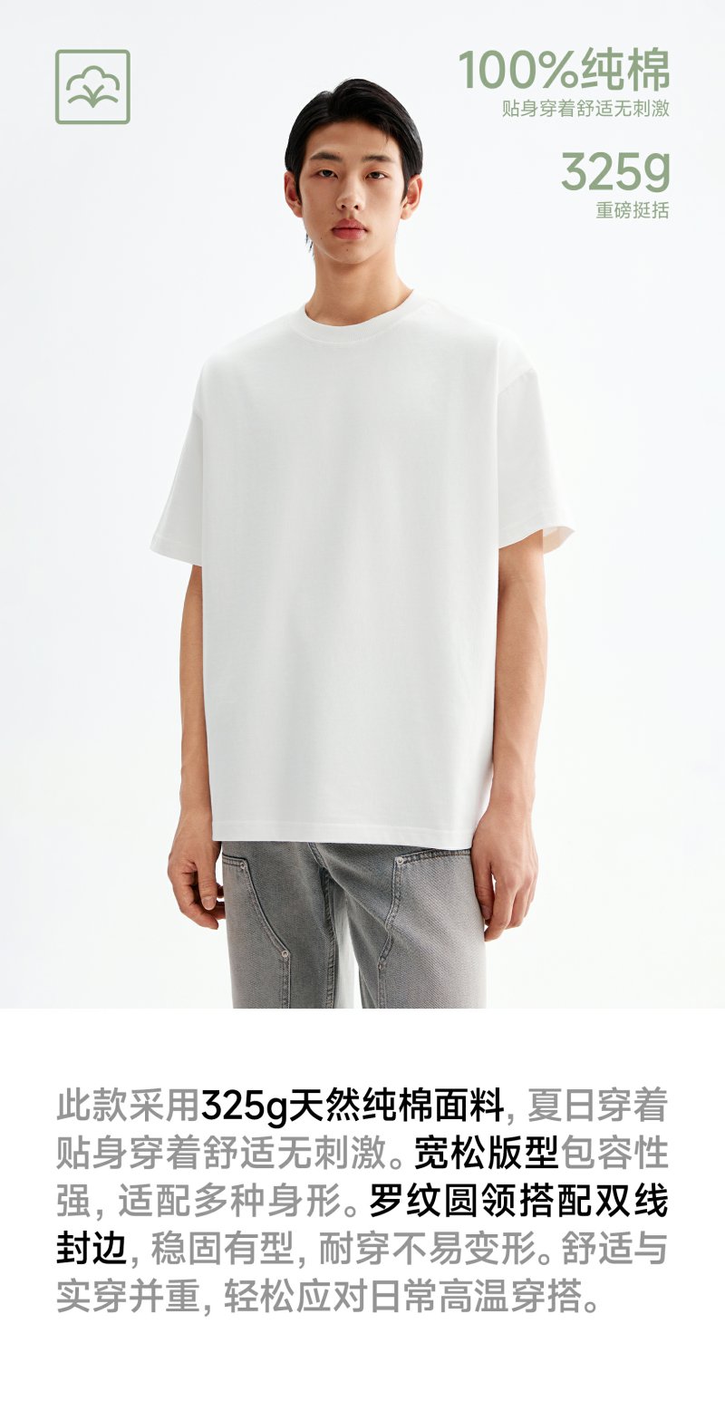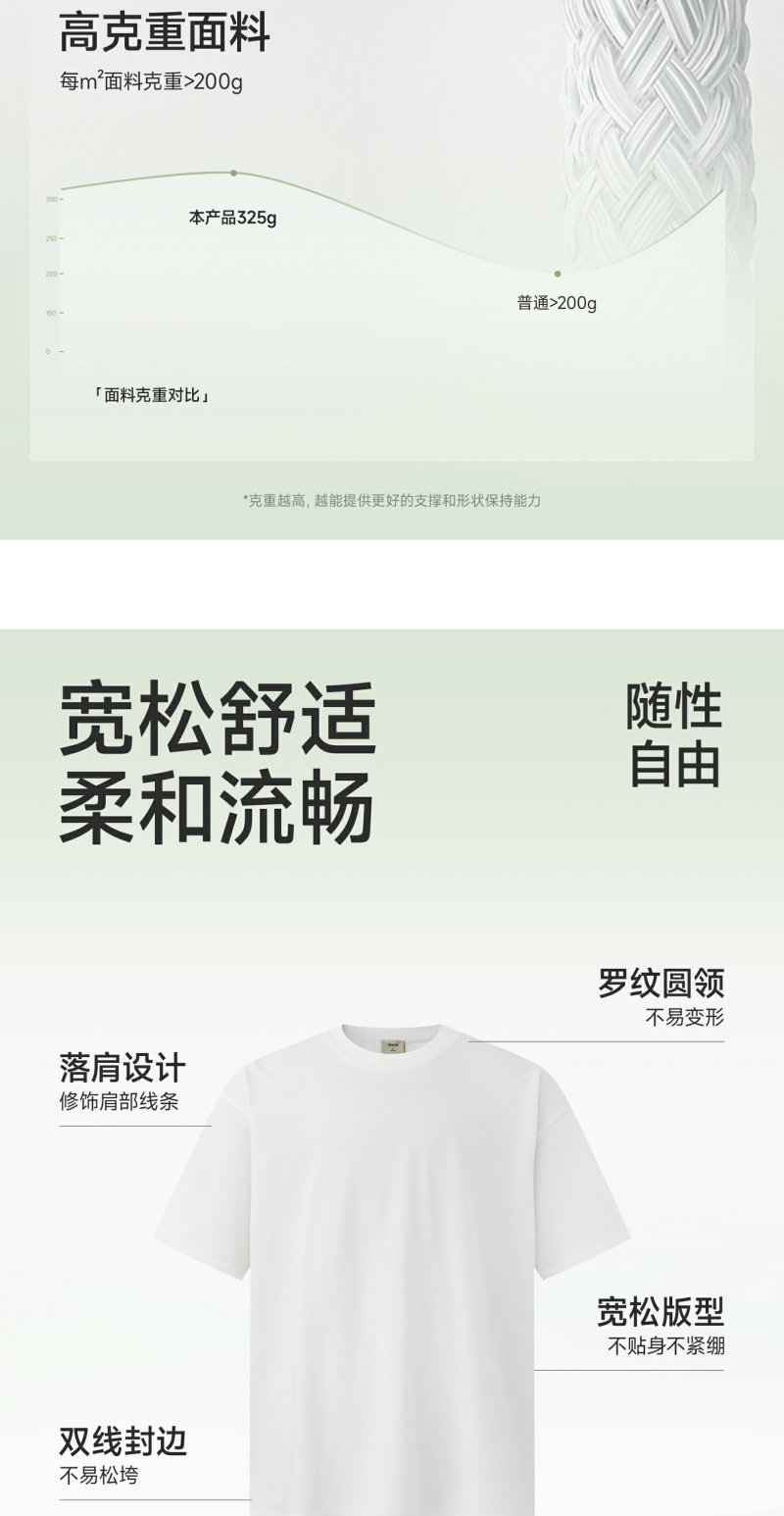 【全棉针织】CHINISM赤尘 重磅纯色短袖T恤男夏季宽松五分袖上衣