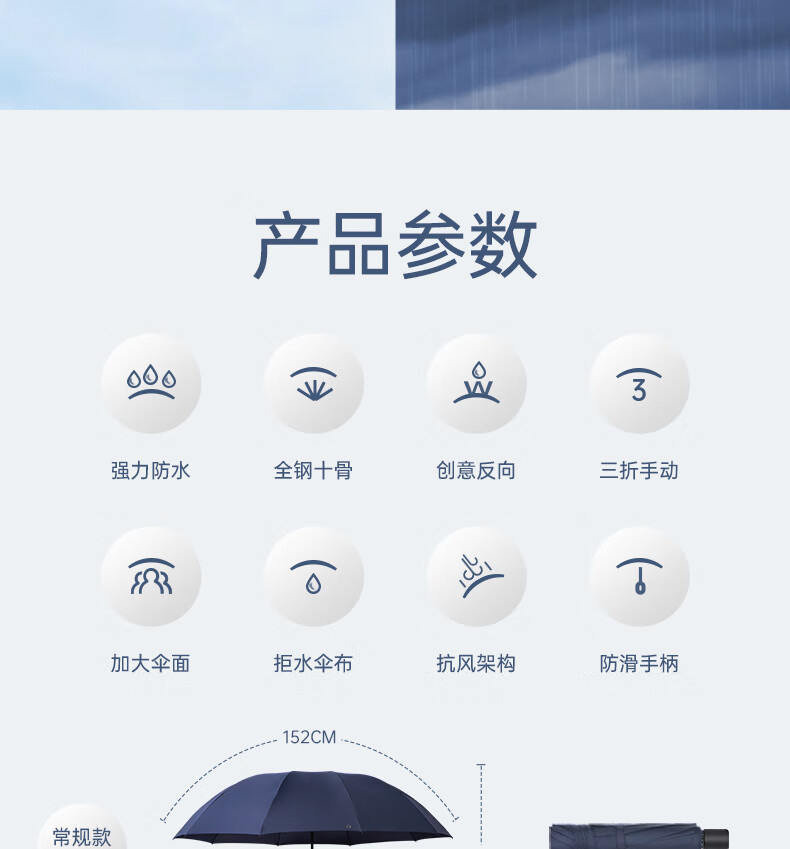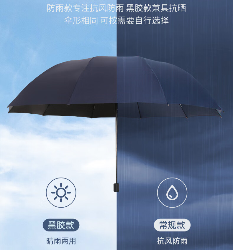 天堂 双人雨伞三折 雨伞加大加固三折晴雨伞全钢十骨大伞 乌木黑