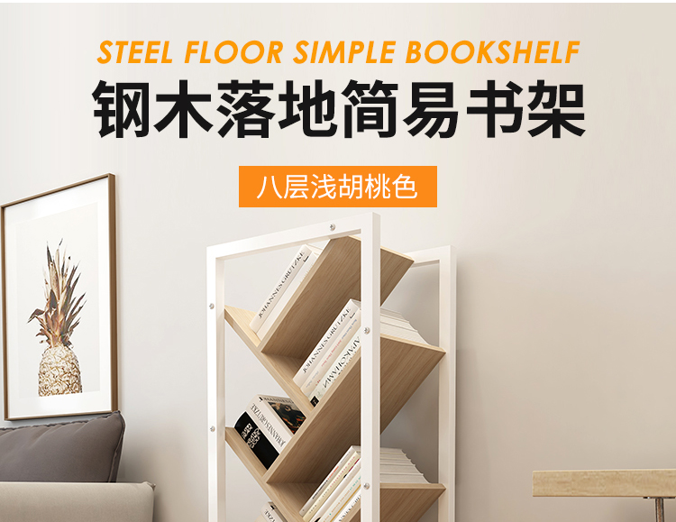 帅力书架 树形多层简易储物置物铁框书架子114cm八层原色SL8117S 100000543194