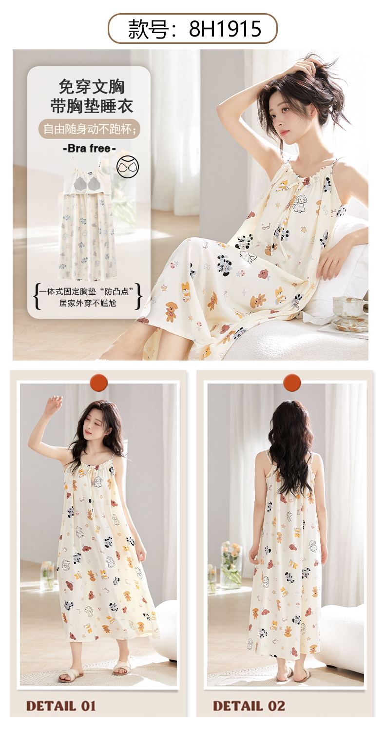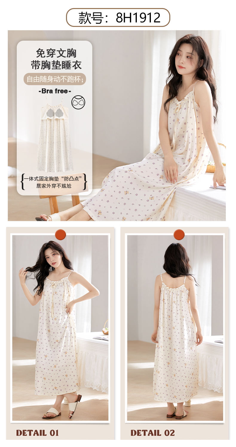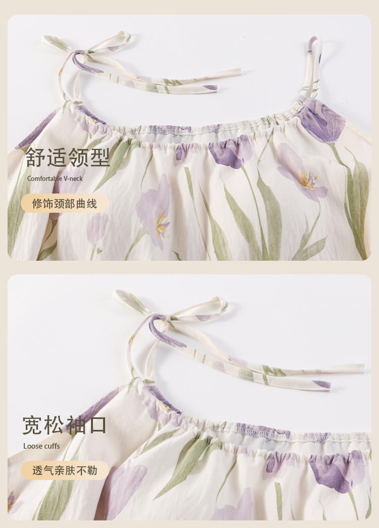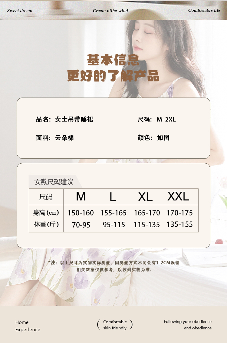 自然醒未央(带胸垫)吊带睡裙女夏季云朵棉薄款甜美日系少女学生无袖夏天家居服QH