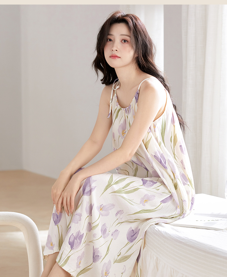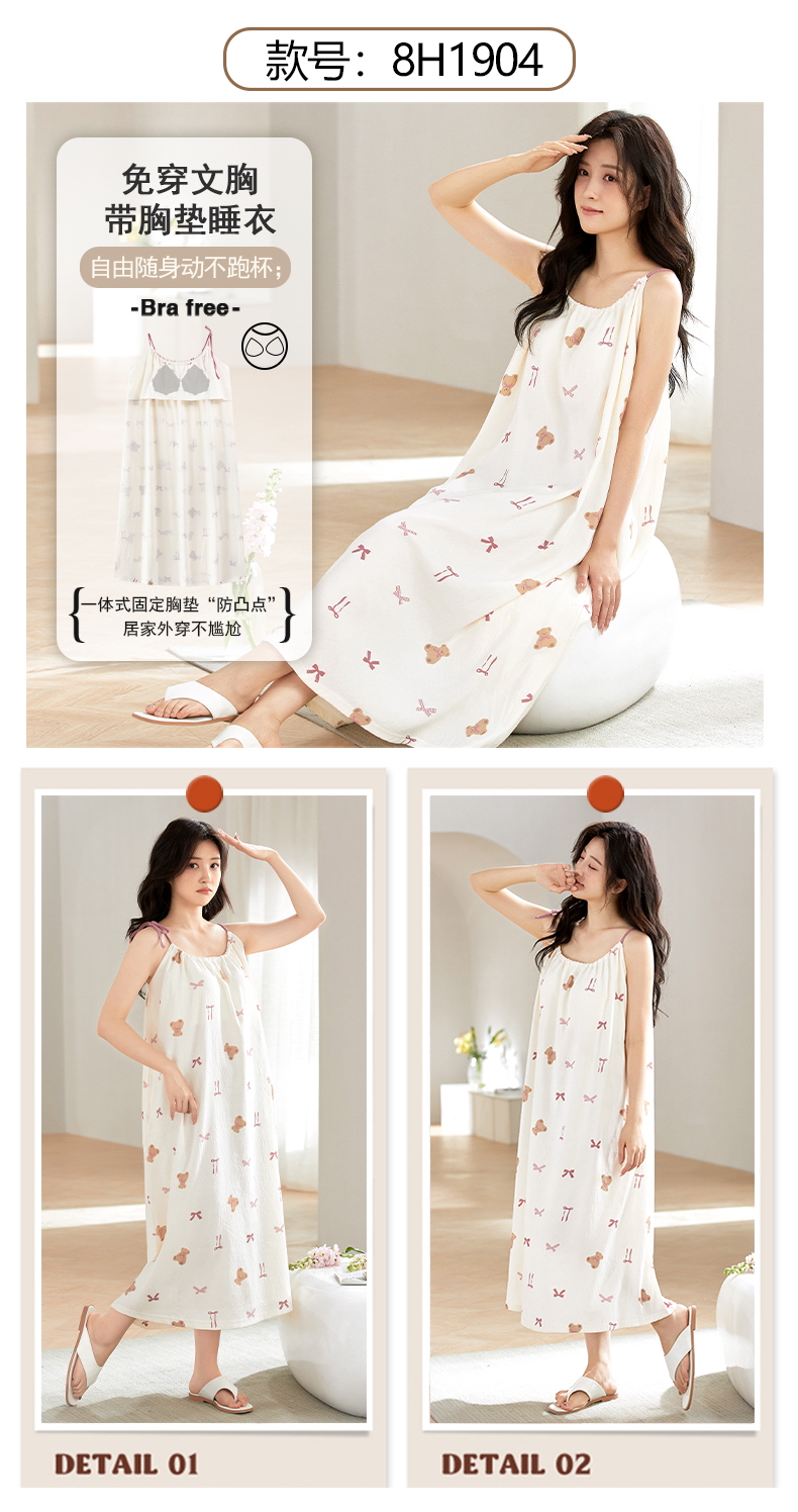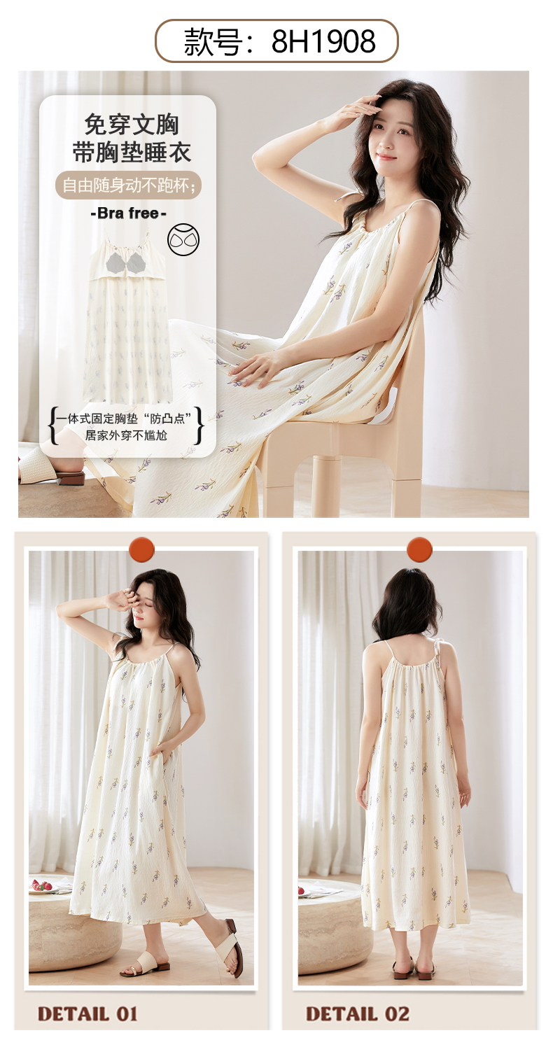自然醒未央(带胸垫)吊带睡裙女夏季云朵棉薄款甜美日系少女学生无袖夏天家居服QH