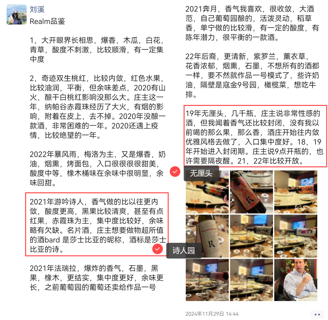 让睿梦起死回生的是2012年份的酒,拿到了帕克100满分,而且是2个。名副其实的卷王了,99不行,要100分。庄主还来句:我们永不满足。