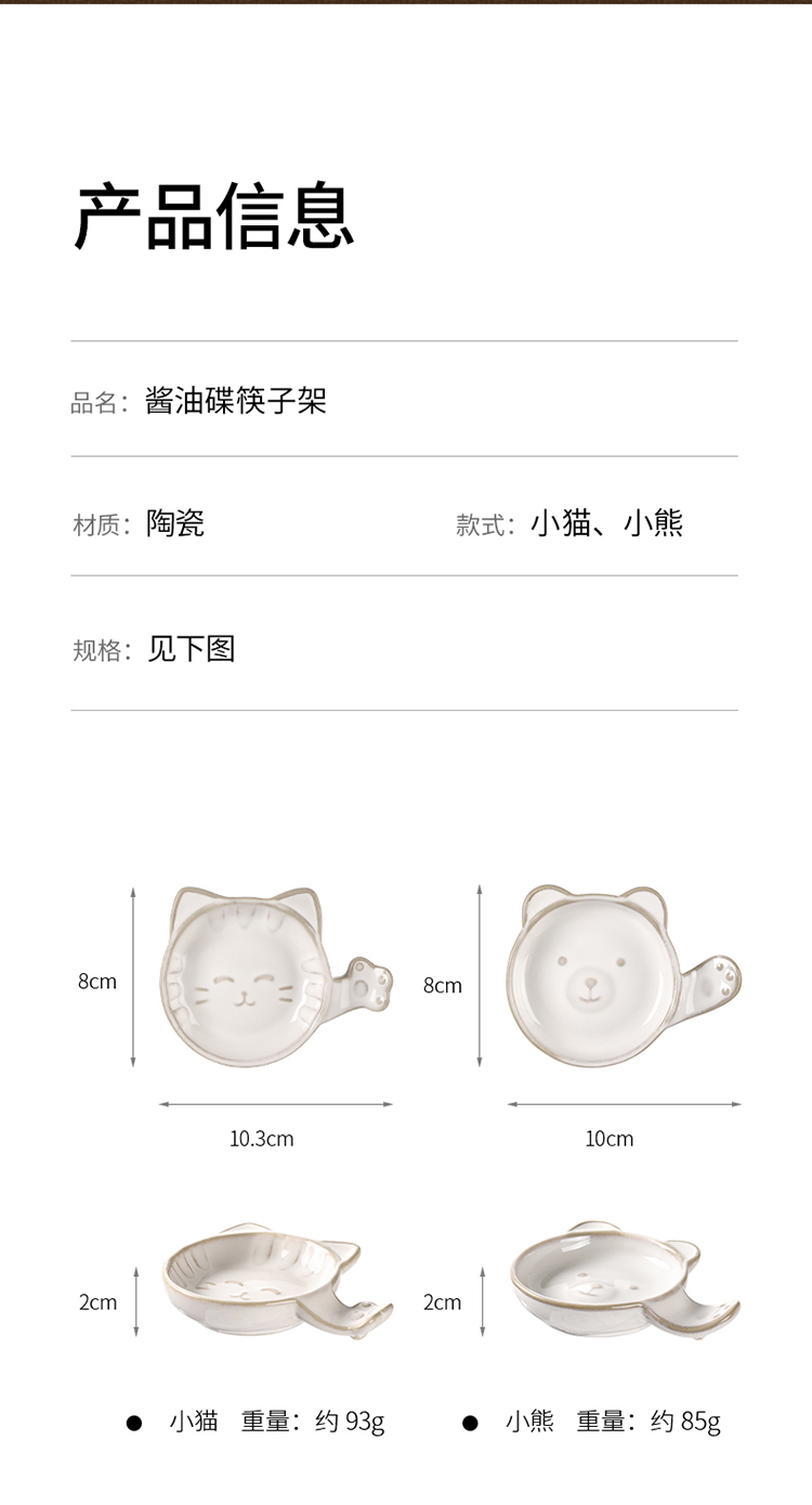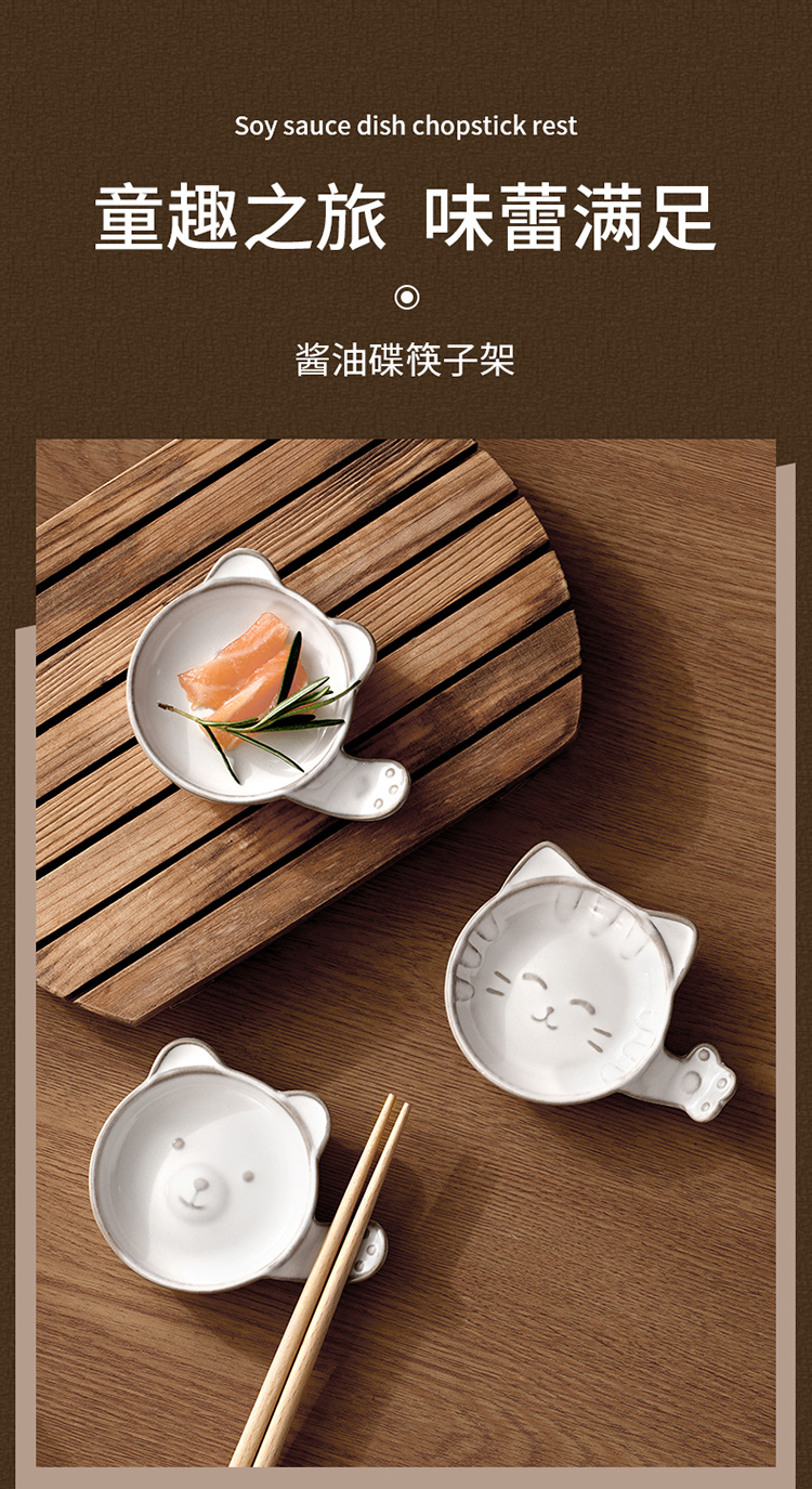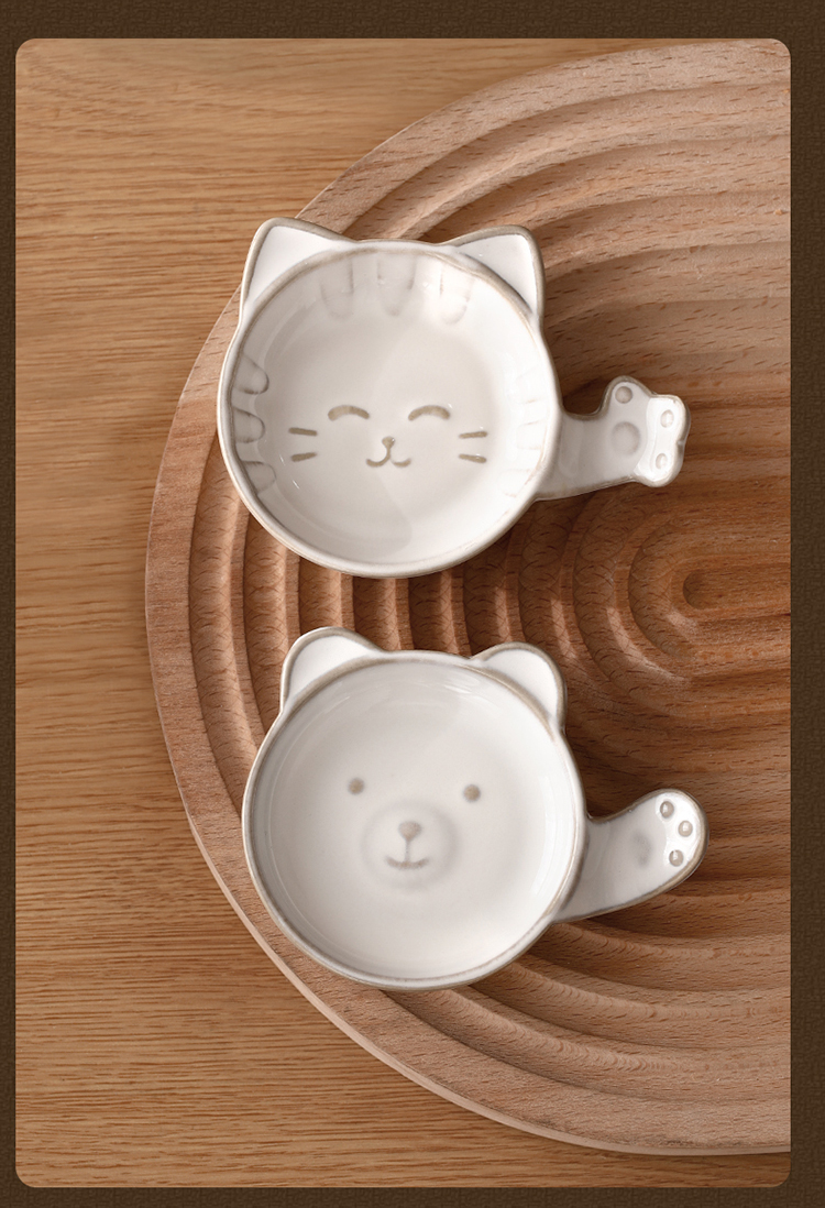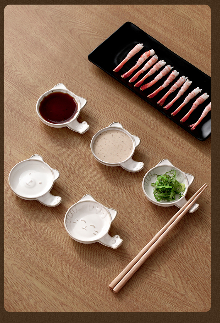 FaSoLa陶瓷蘸料碟可爱猫咪小碟子家用酱油醋调味碟咸菜碟创意筷子托筷架
