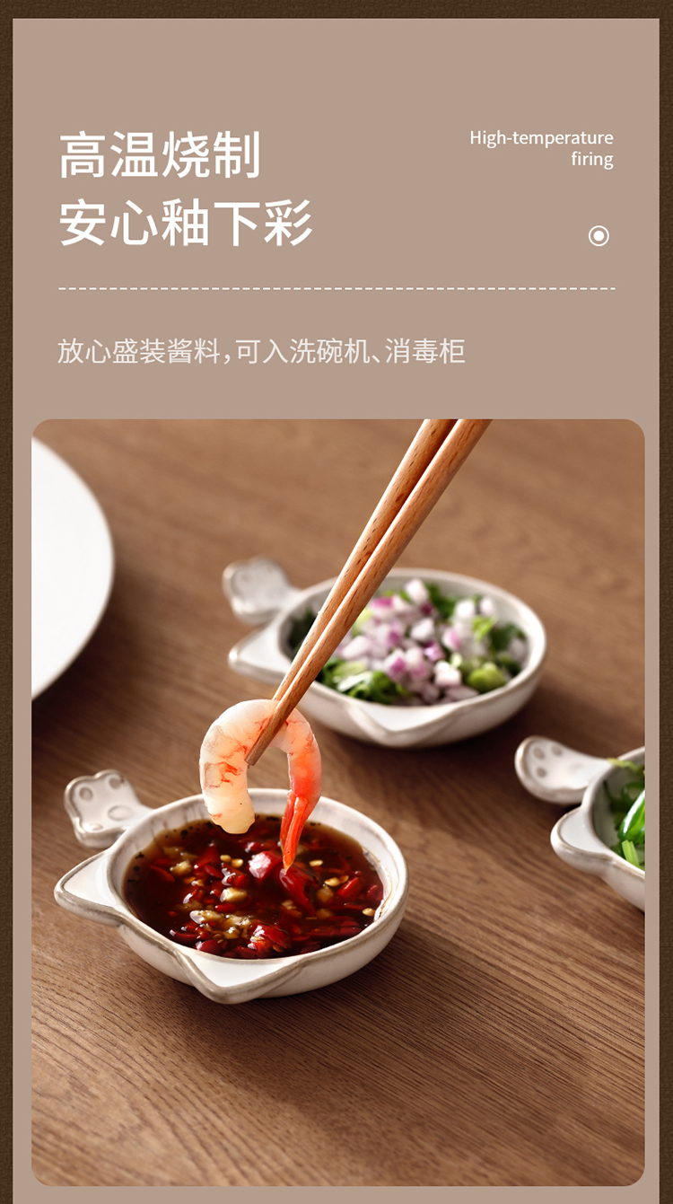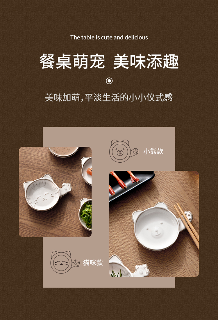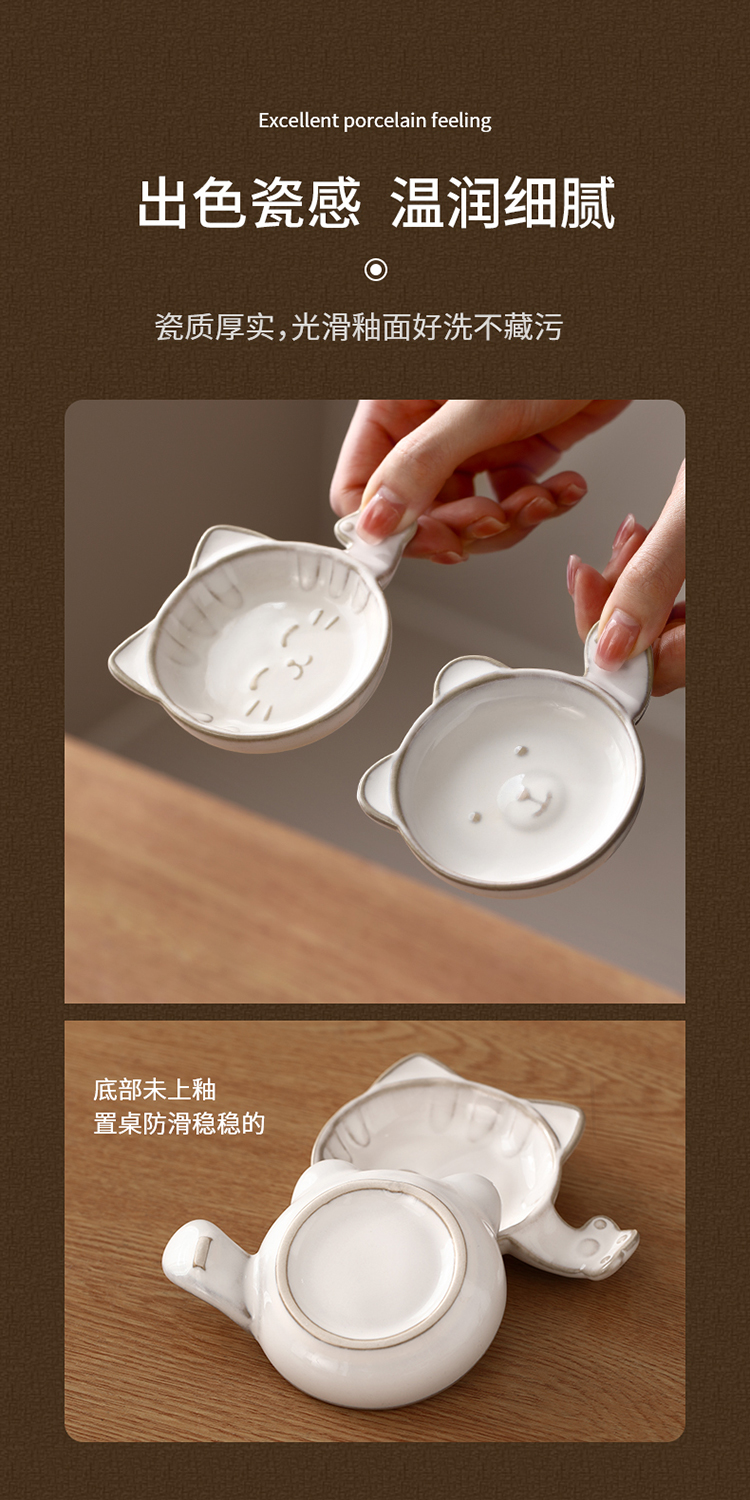FaSoLa陶瓷蘸料碟可爱猫咪小碟子家用酱油醋调味碟咸菜碟创意筷子托筷架
