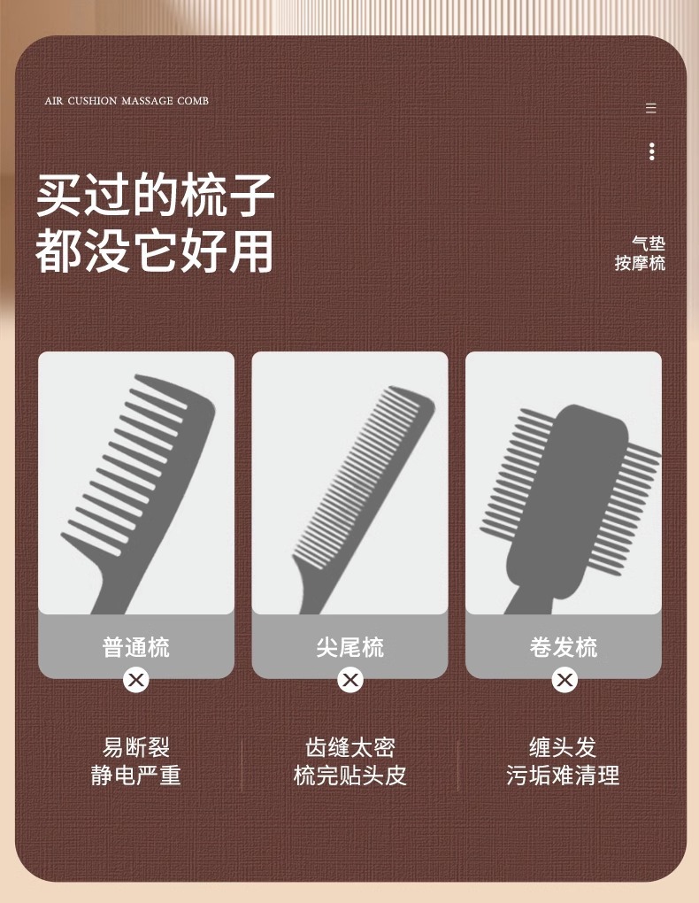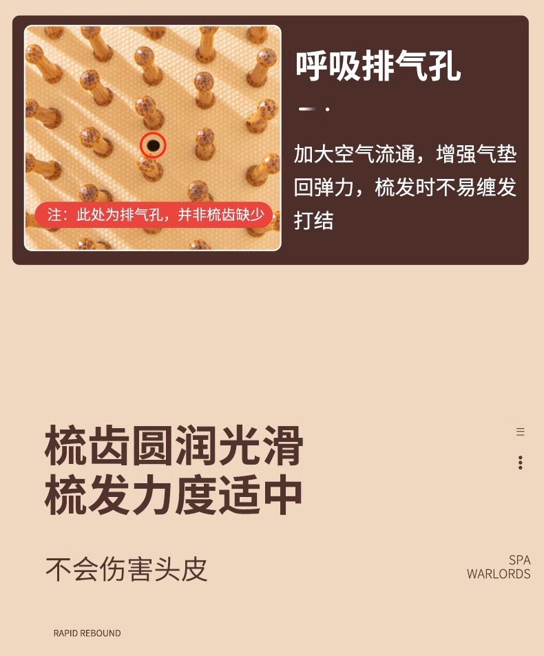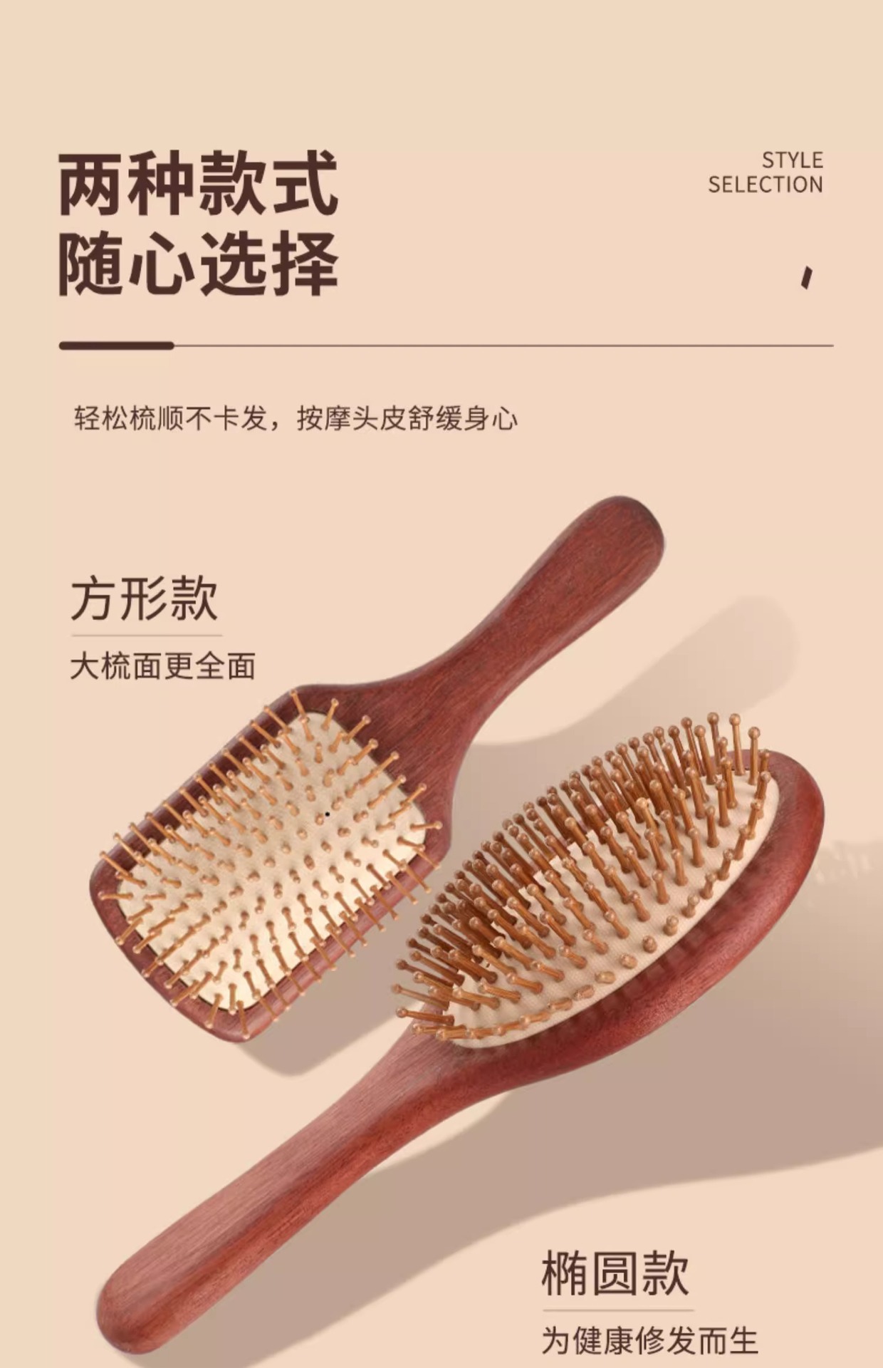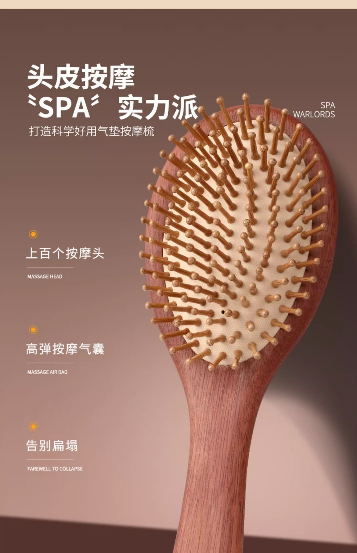 【红檀香气垫梳】家用梳子按摩头皮经络女士专用楠竹大板梳蓬松气囊梳,轻松梳顺不卡发,按摩头皮舒缓身心。ry