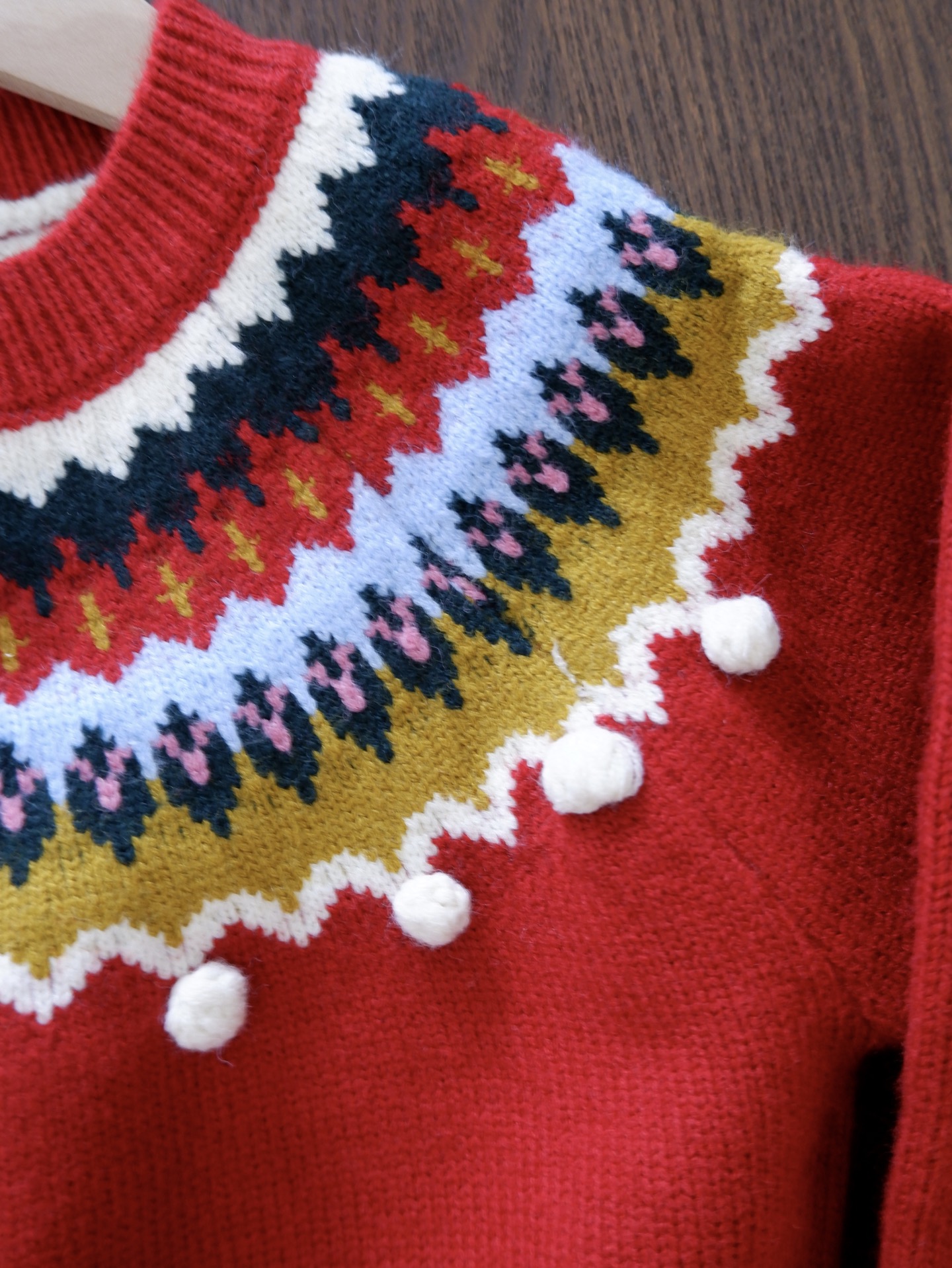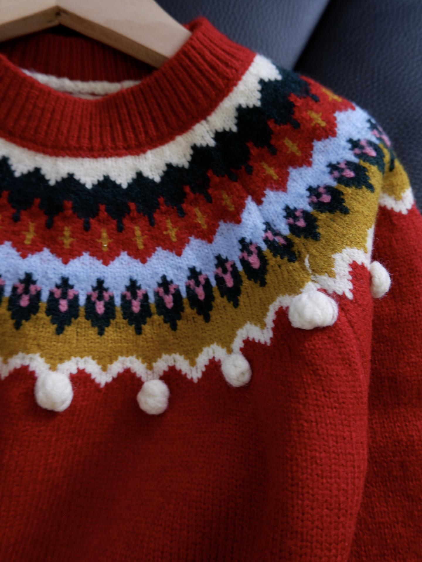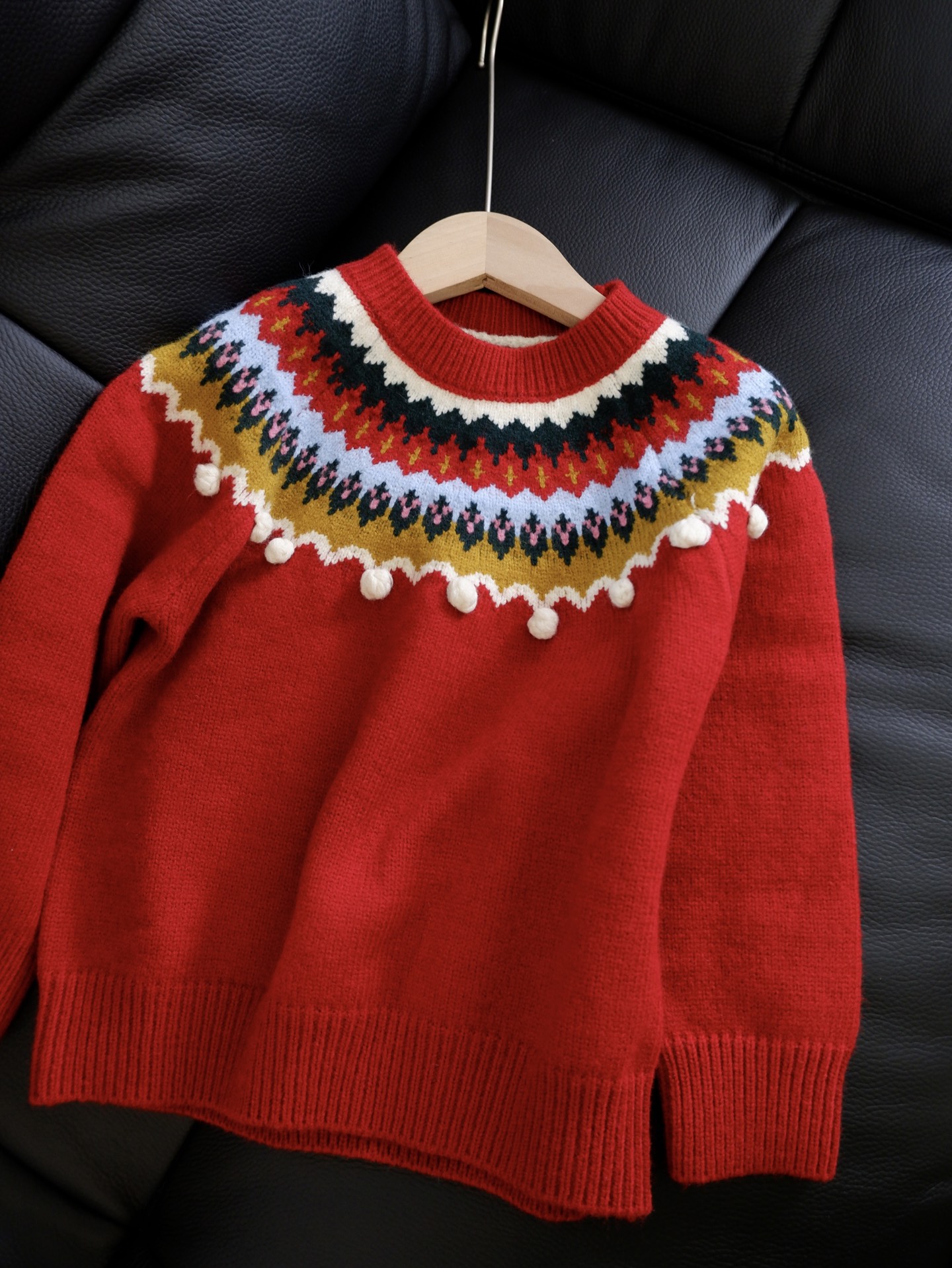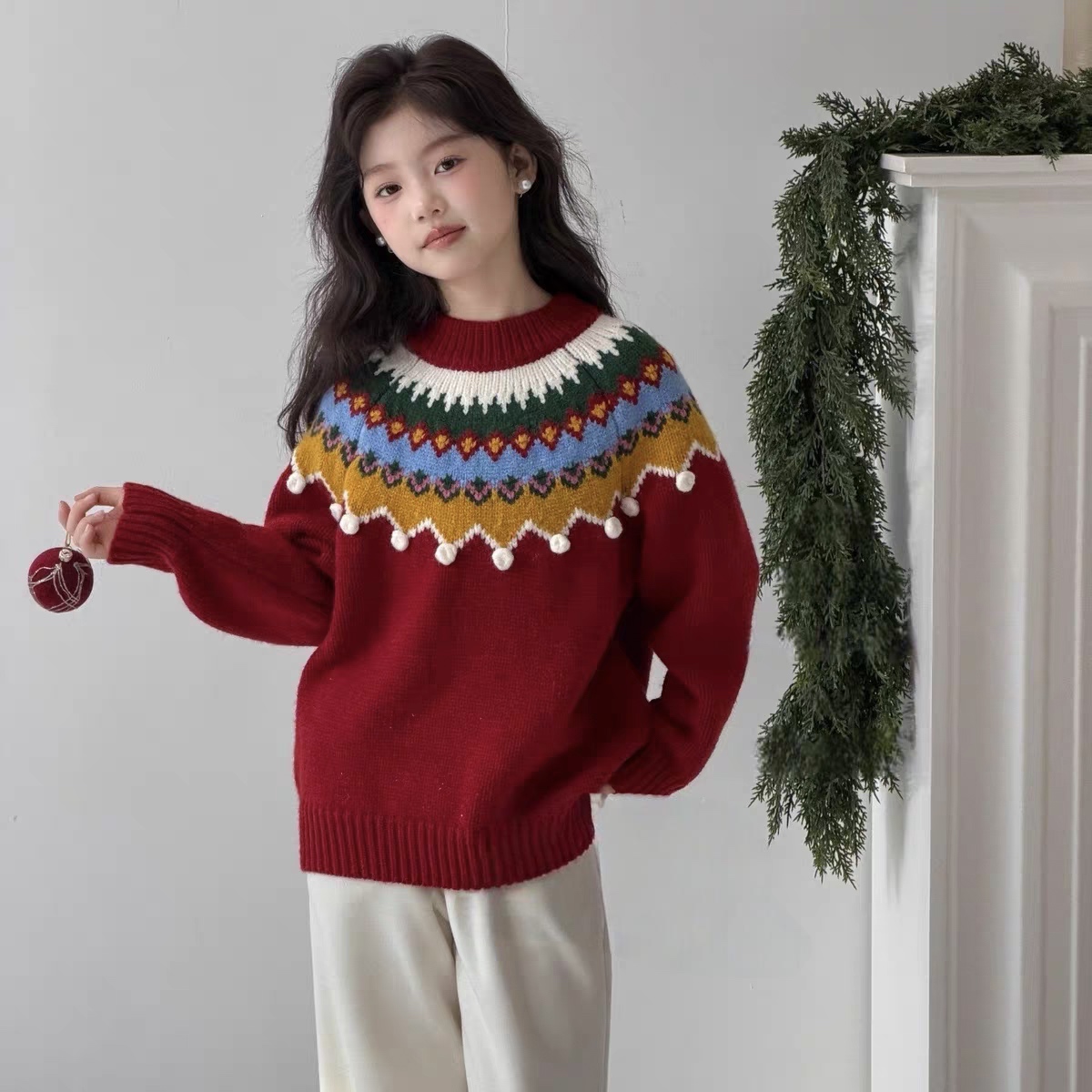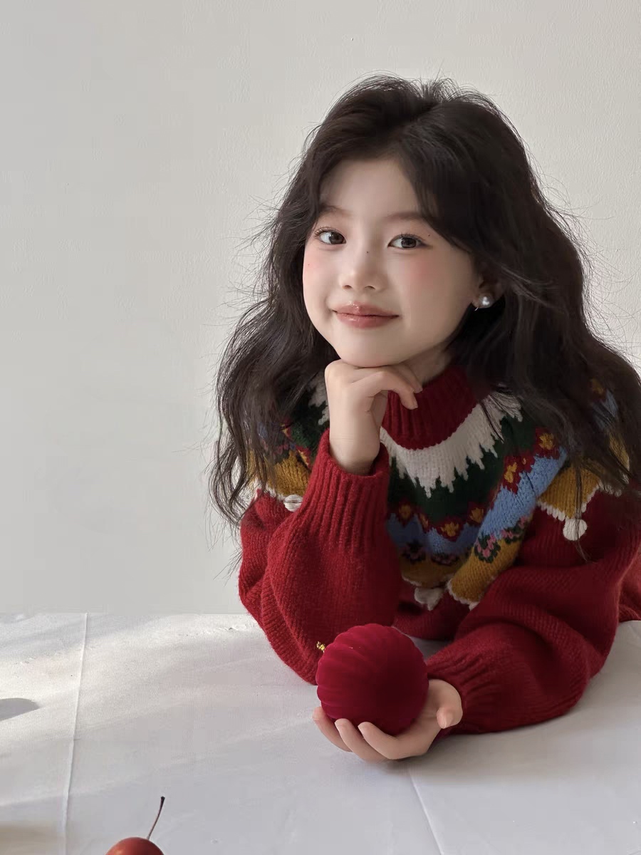 它不只是“一件红毛衣”,更是 藏着雪花、毛球、复古纹样的精致礼物,让孩子在寒冬里温暖又明亮。