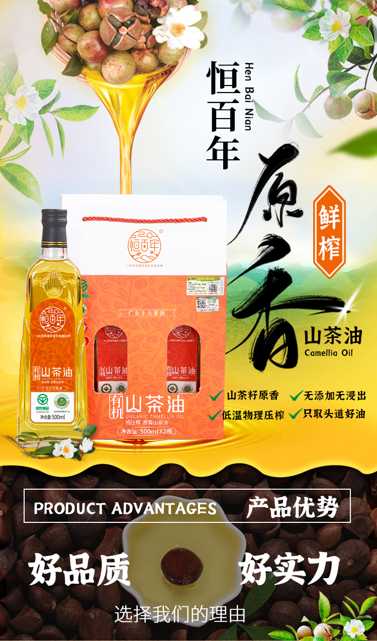 【韶关帮扶】恒百年有机原香山茶油 500ml*2