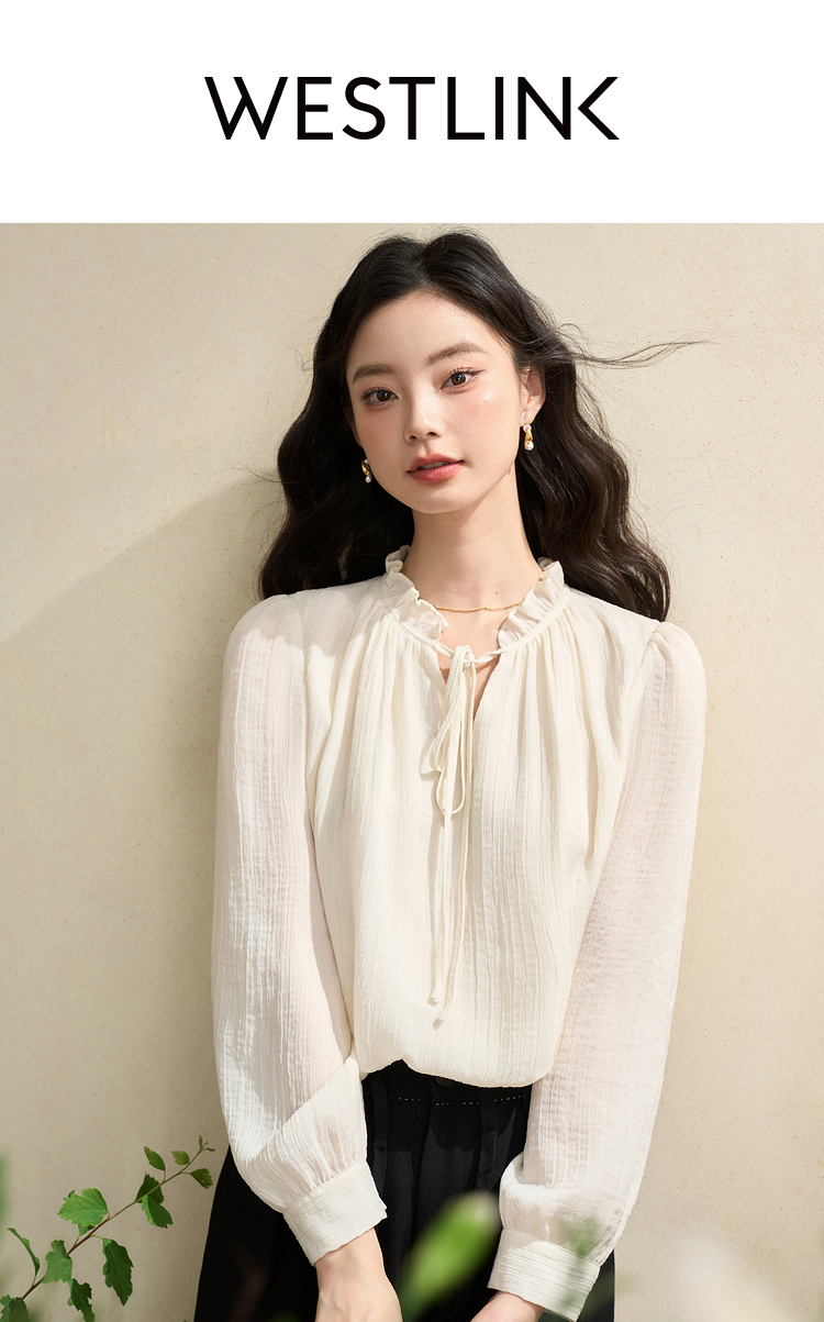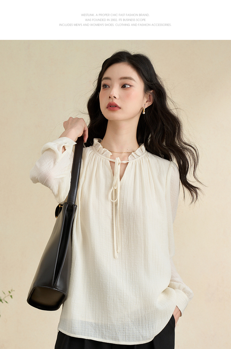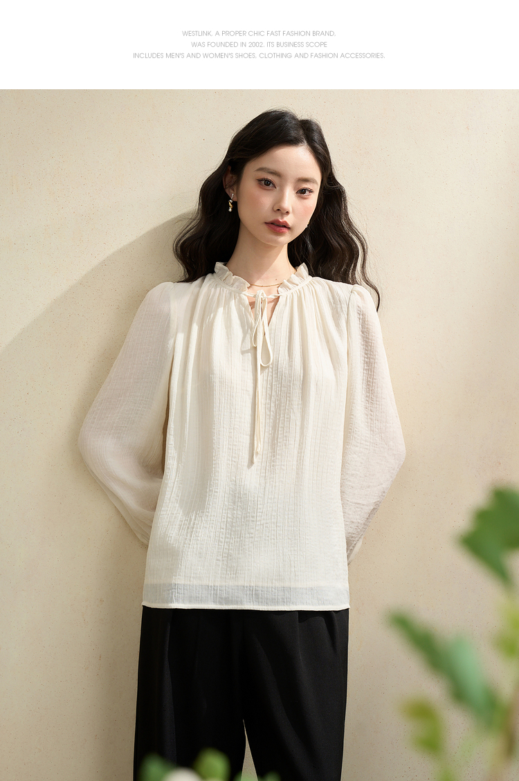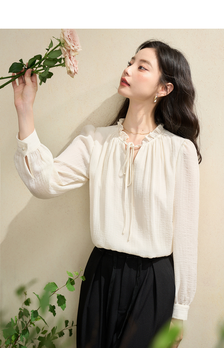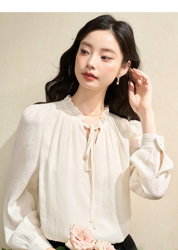 法式浪漫气质温柔肌理感轻薄通勤衬衫女系带衬衣V3142203