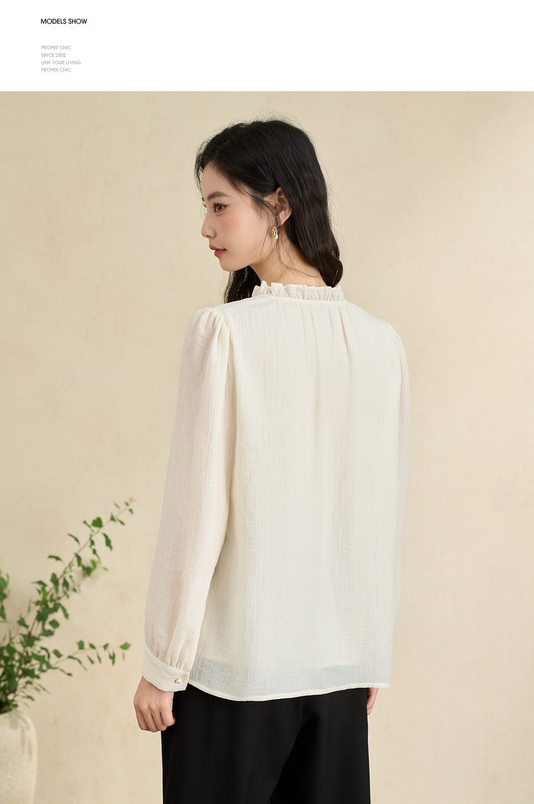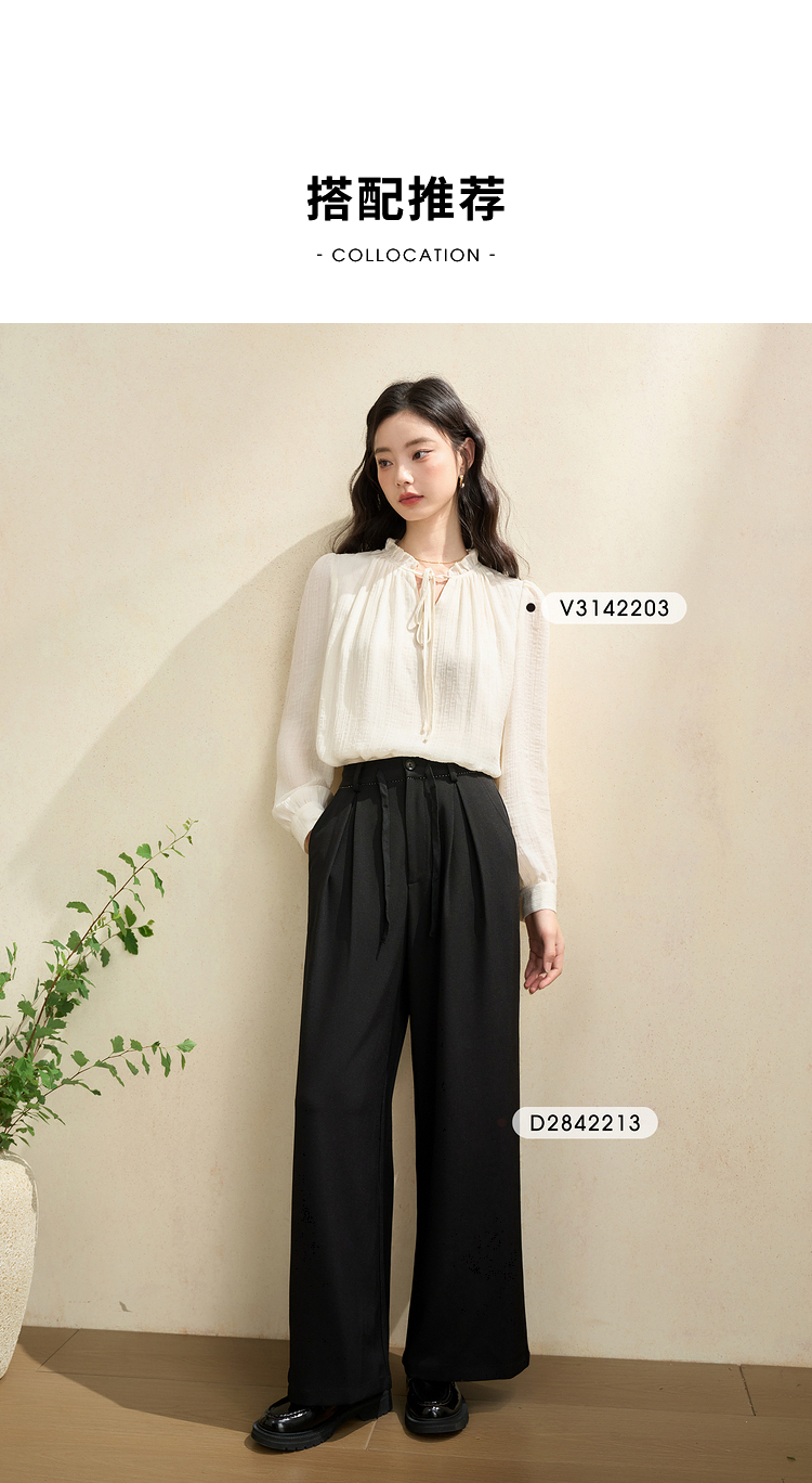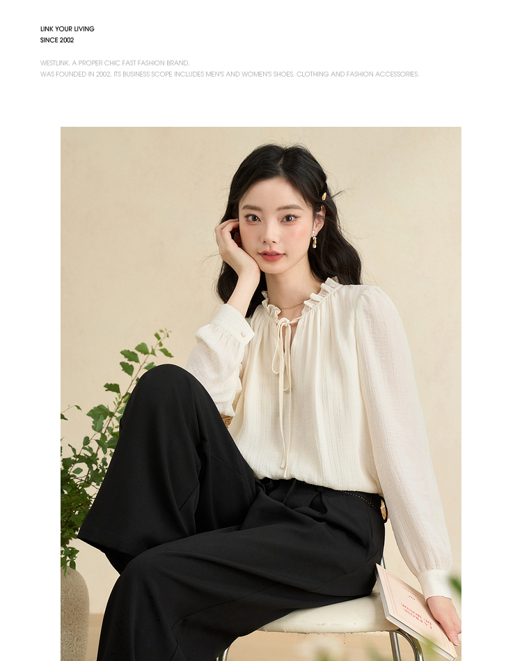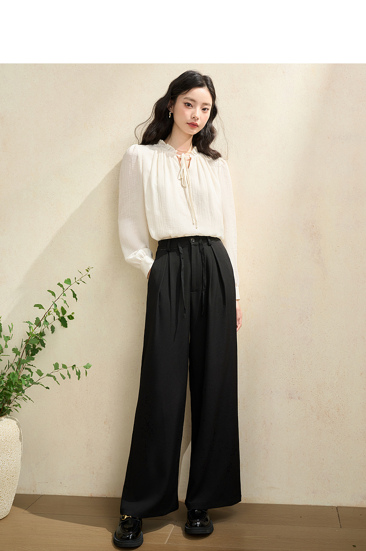 法式浪漫气质温柔肌理感轻薄通勤衬衫女系带衬衣V3142203