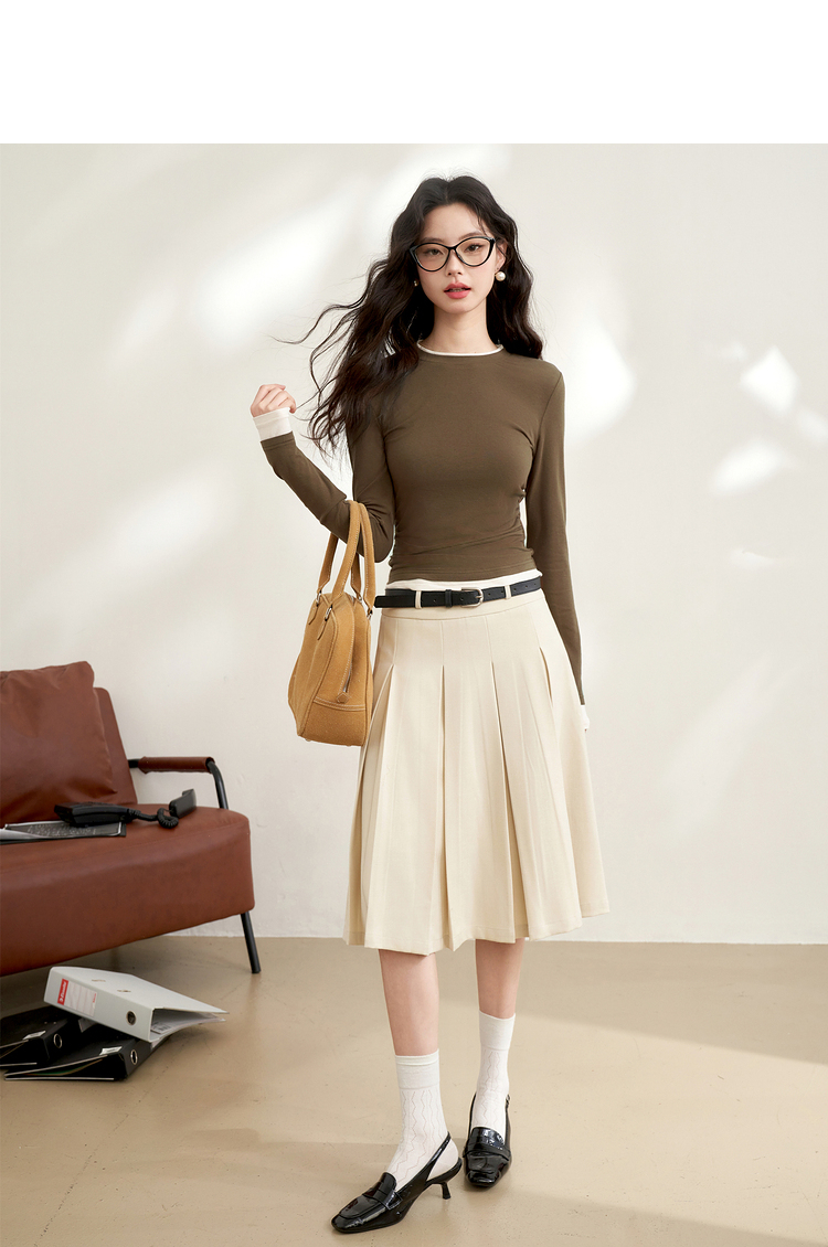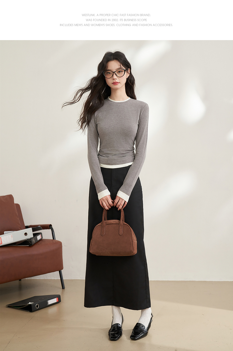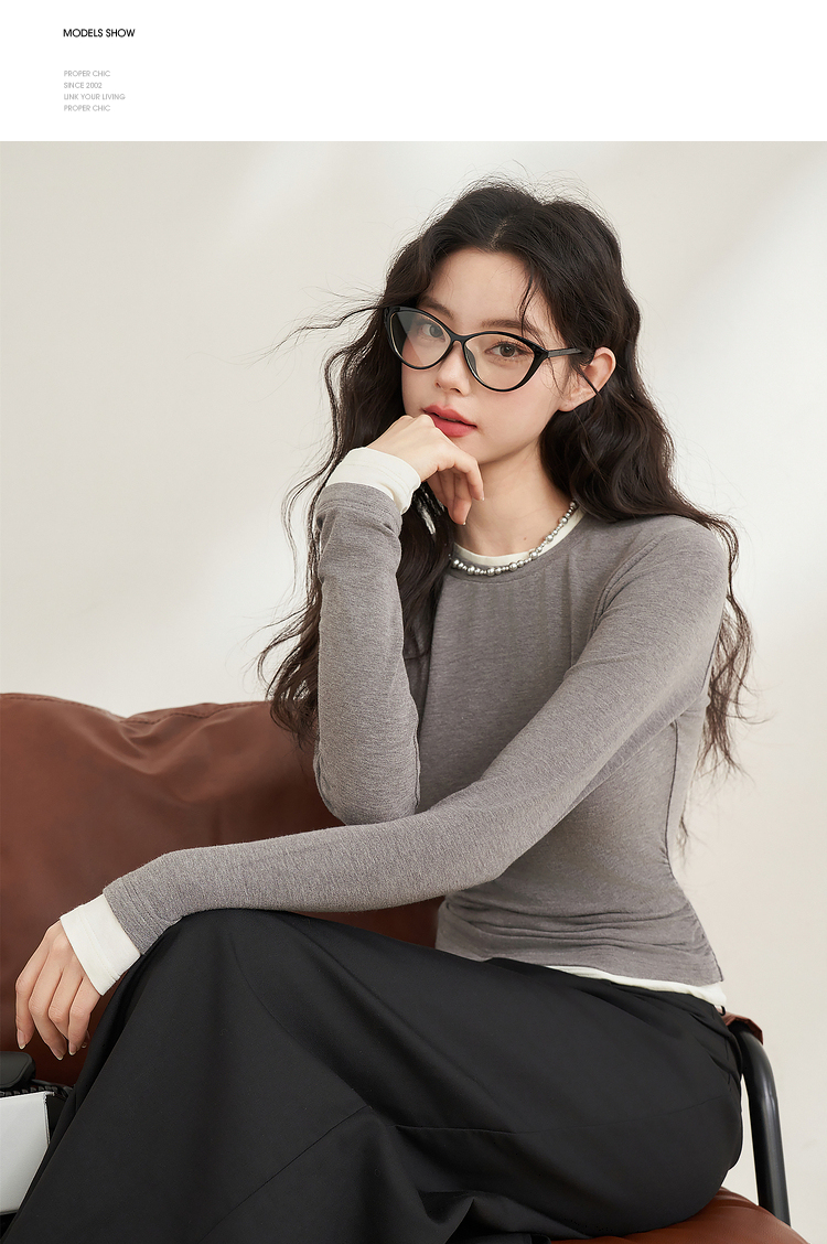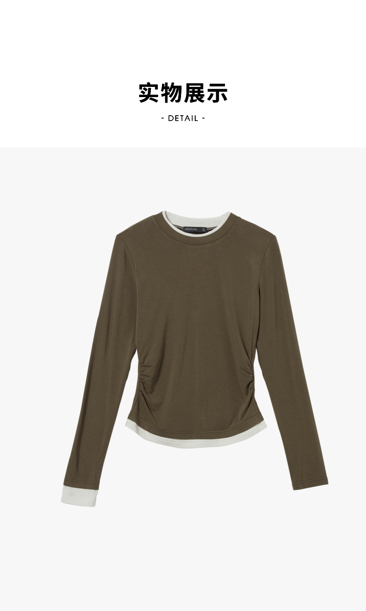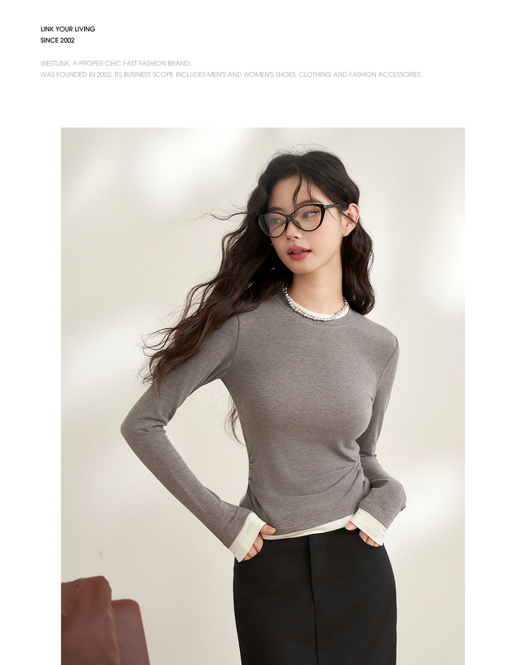 西遇韩版拼接假两件上衣新款修身显瘦打底衫内搭长袖T恤D0340259