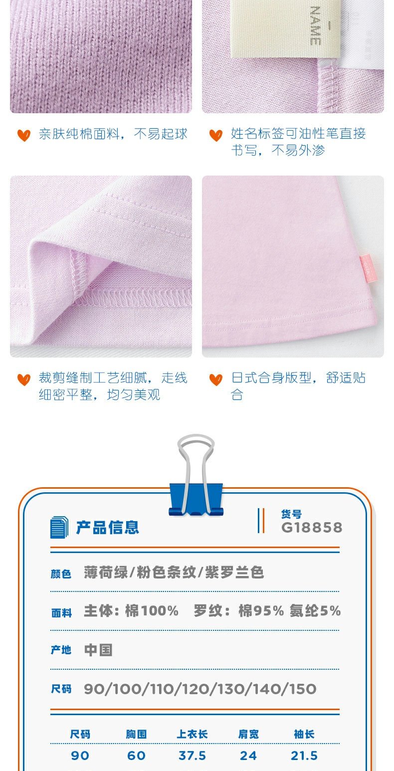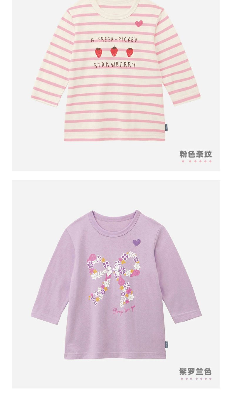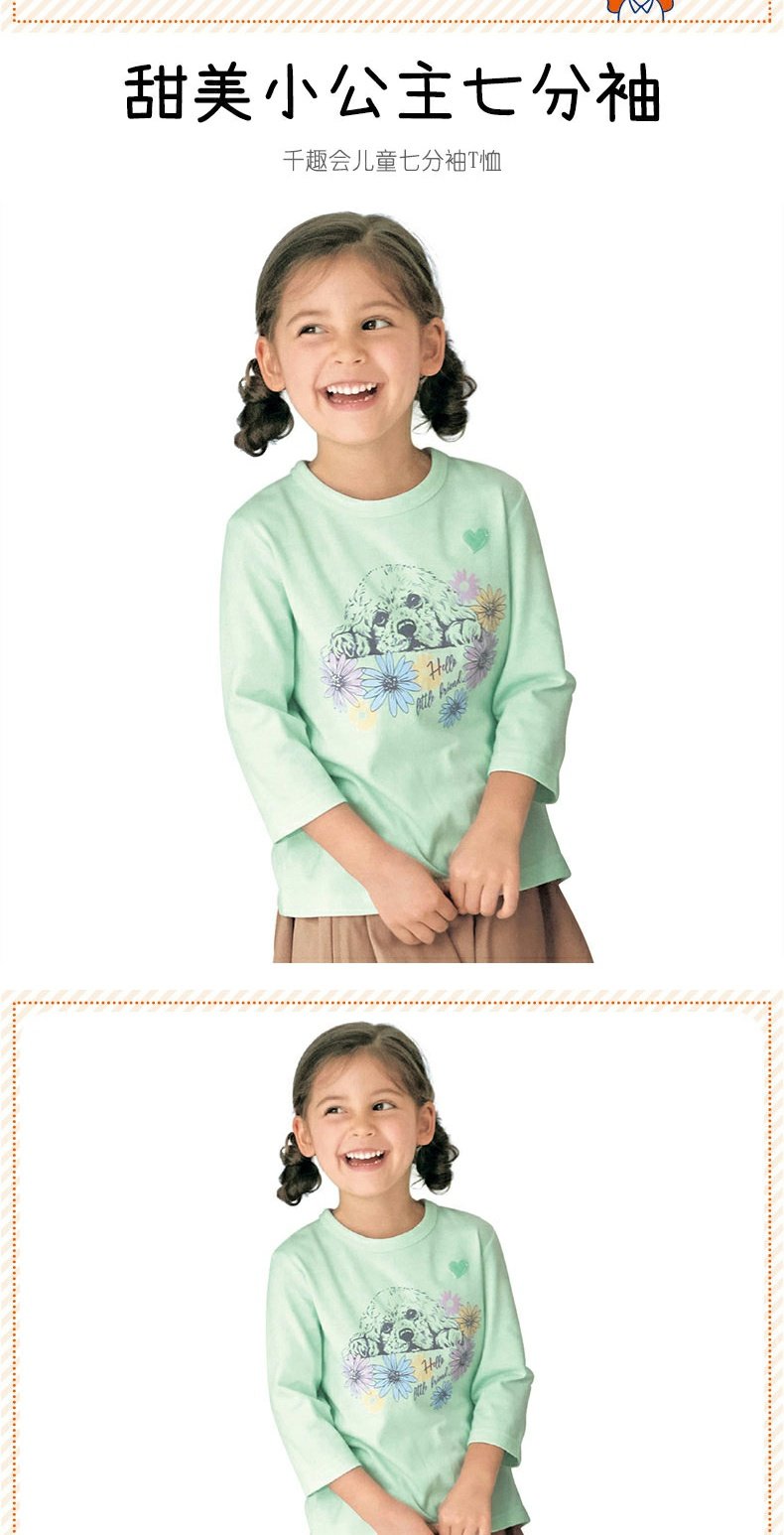 千趣会童装春夏女童可爱甜美卡通宽松条纹印花棉质七分袖T恤