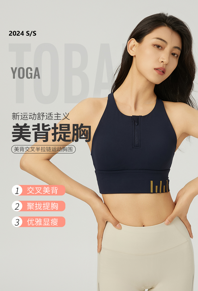 【双旦秒】elina一恋2024新款交叉美背半拉链瑜伽普拉提胸围QC2862(特价产品,收货7天内支持调换、不退款)