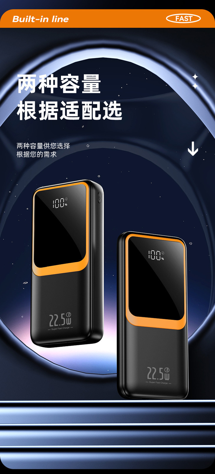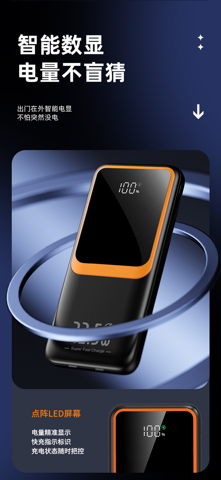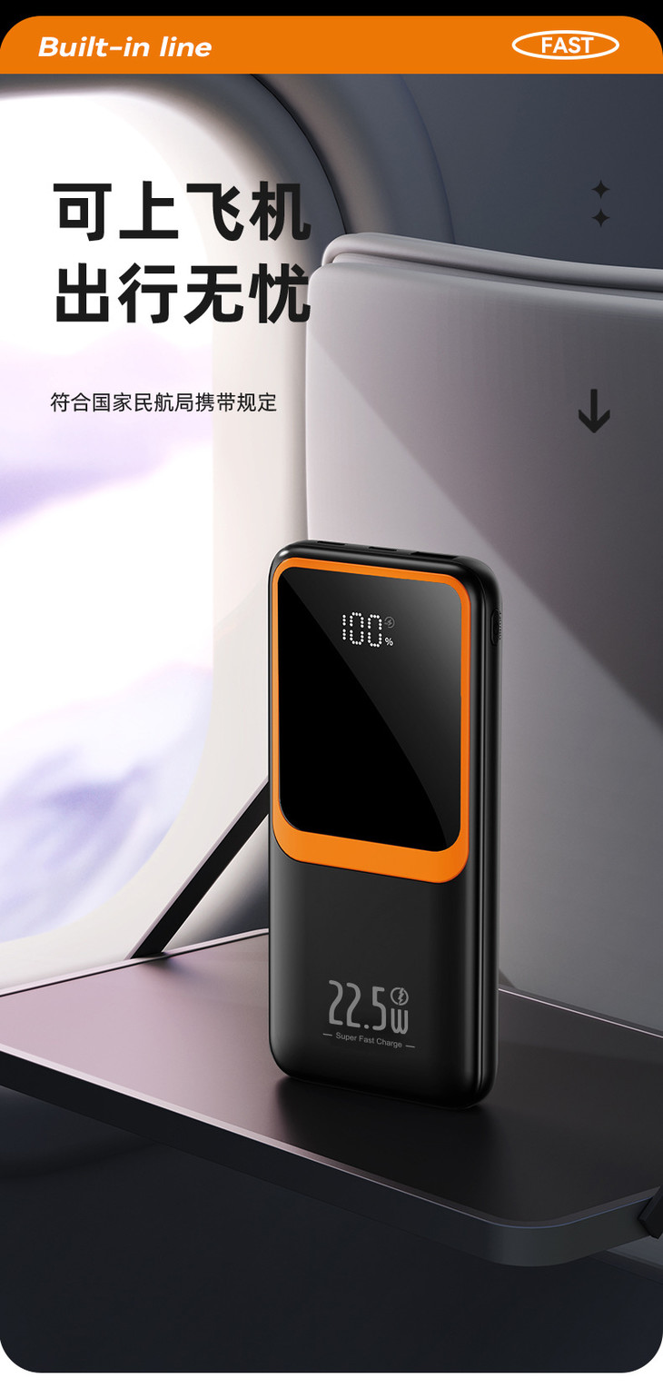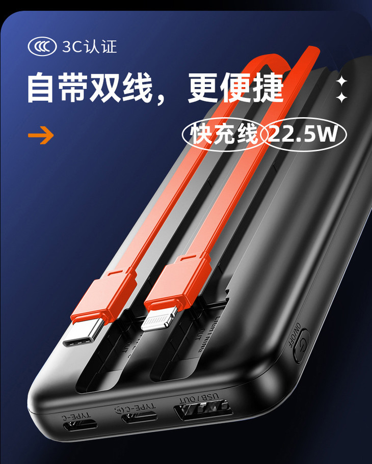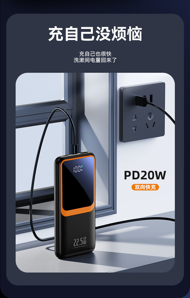 「1万毫安!3C认证」10000毫安快充移动电源22.5w自带线数显充电宝数码配件
