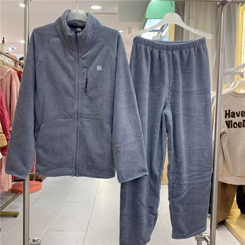 男士立领休闲睡衣套装果粒绒保暖拉链可外穿家居服套装【24R31030】