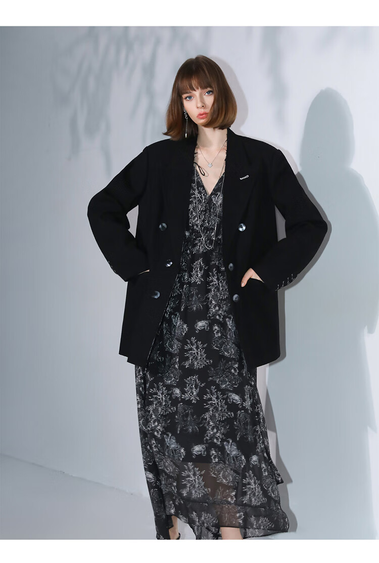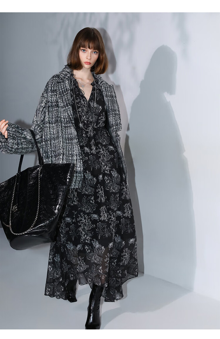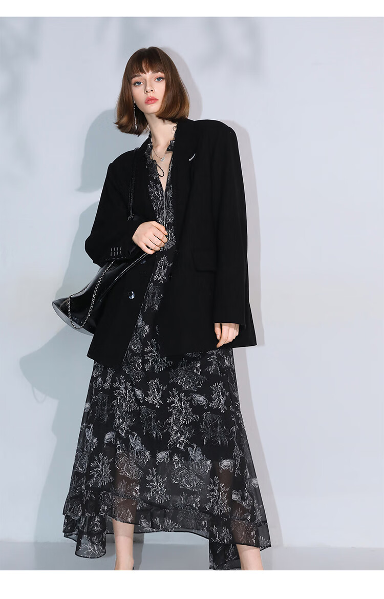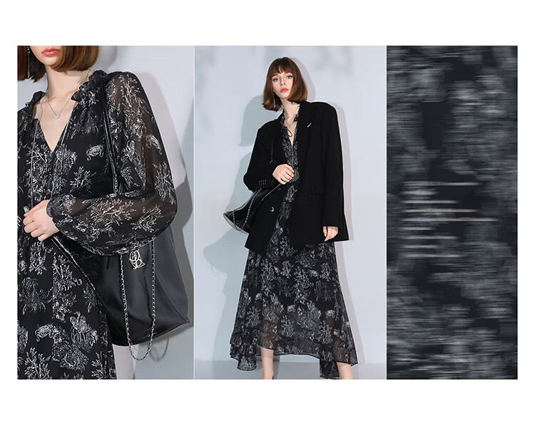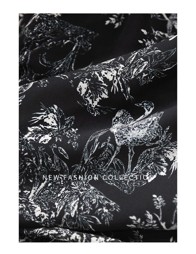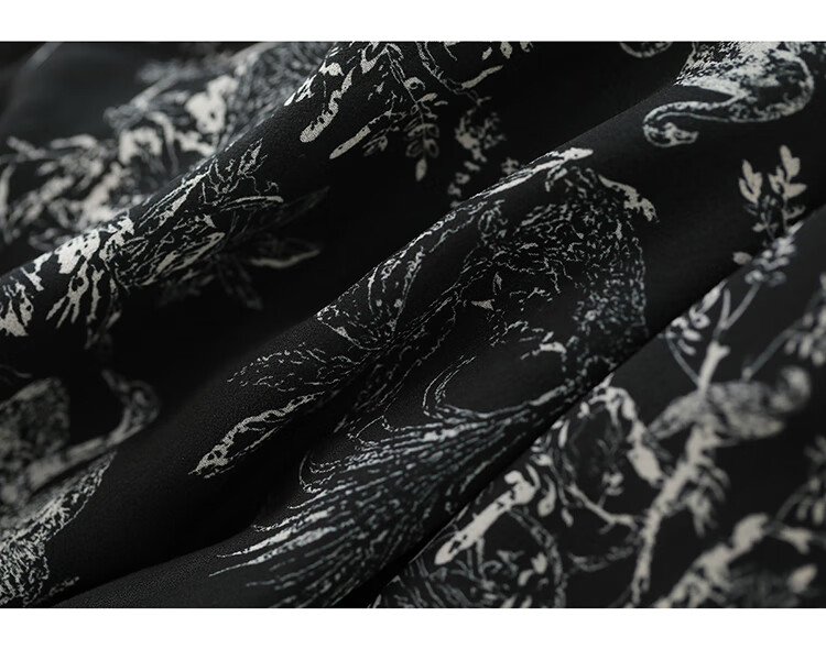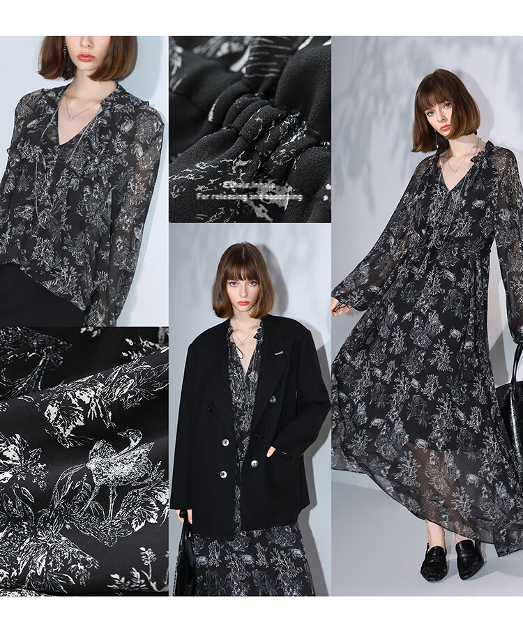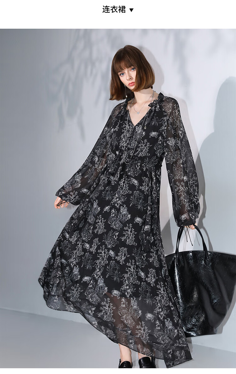 COCOBELLA立体荷叶领印花气质衬衫女秋V领内搭雪纺衫SR3039B