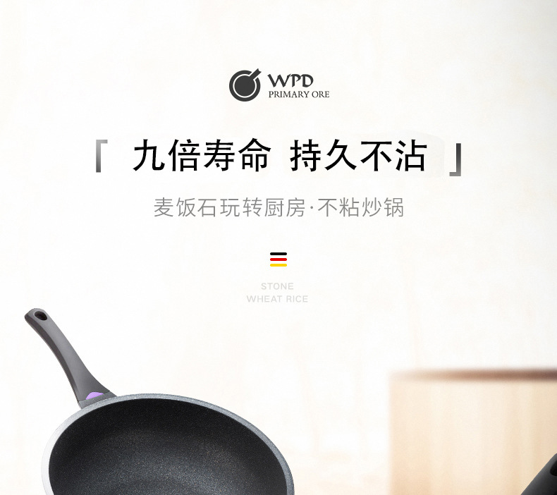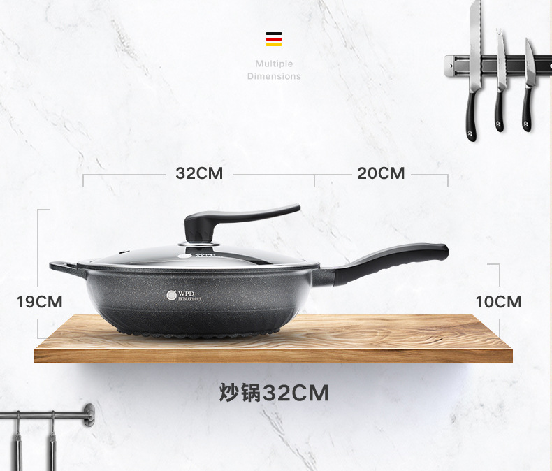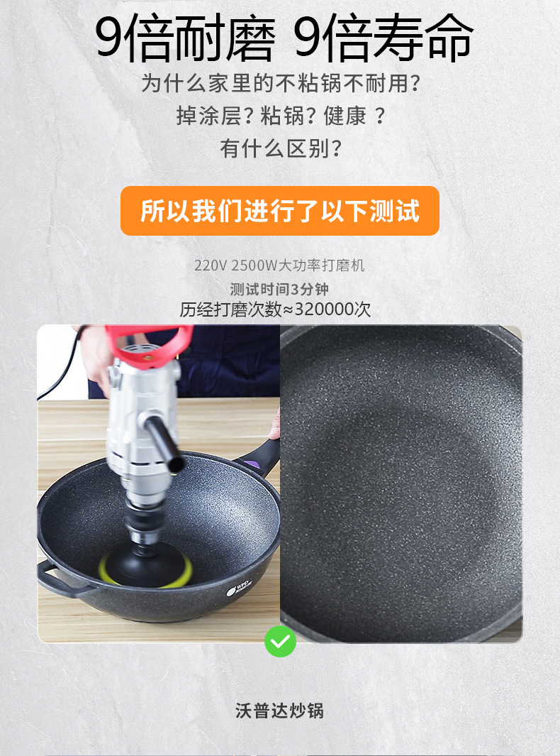 【可用钢丝球麦饭石炒锅】通过德国材料实验室麦饭石不粘锅家用电磁炉煤气灶专用燃气适用平底炒菜不沾锅
