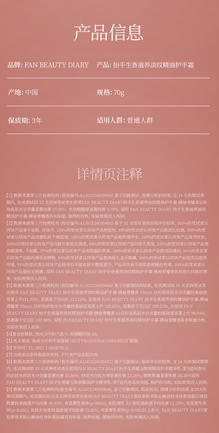 FAN BEAUTY DIARY 抬手生香淡纹护手霜70g+护手精华乳65g