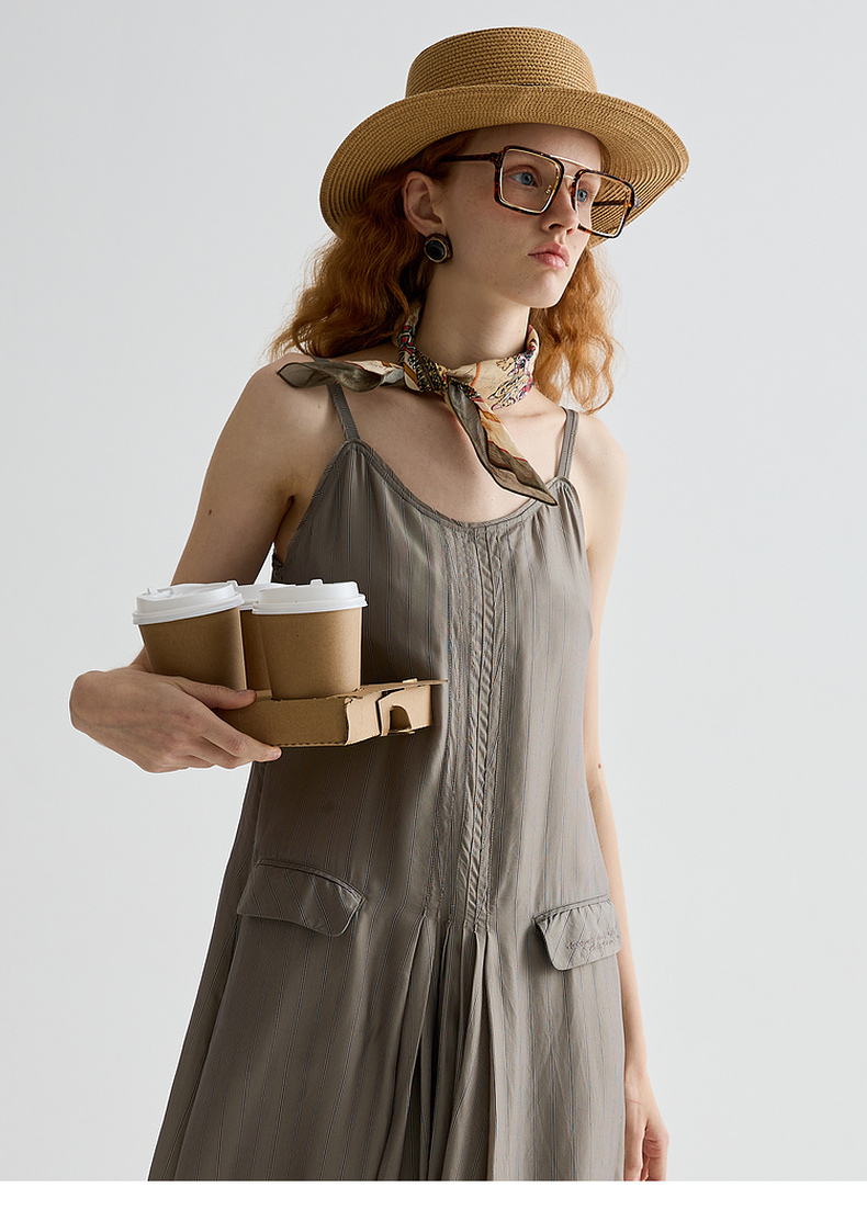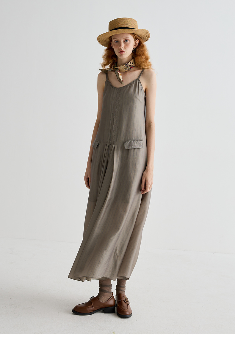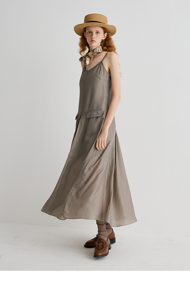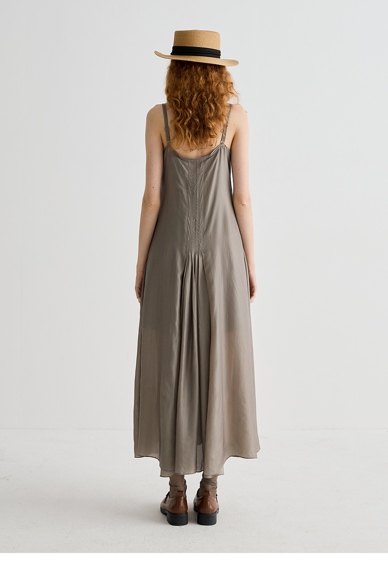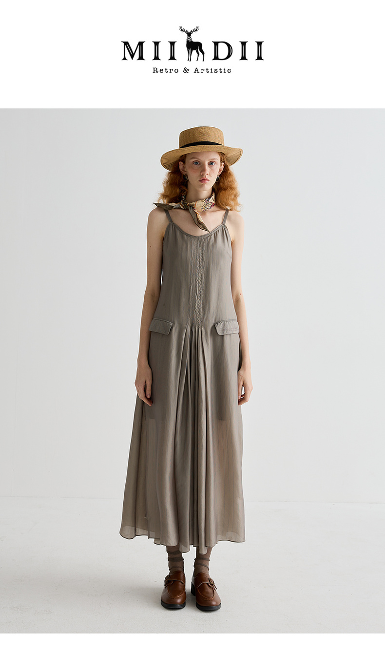 谜底连衣裙无袖女2025夏新品复古风度假刺绣铜氨丝长裙252ML0561