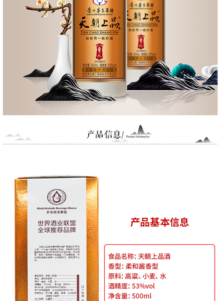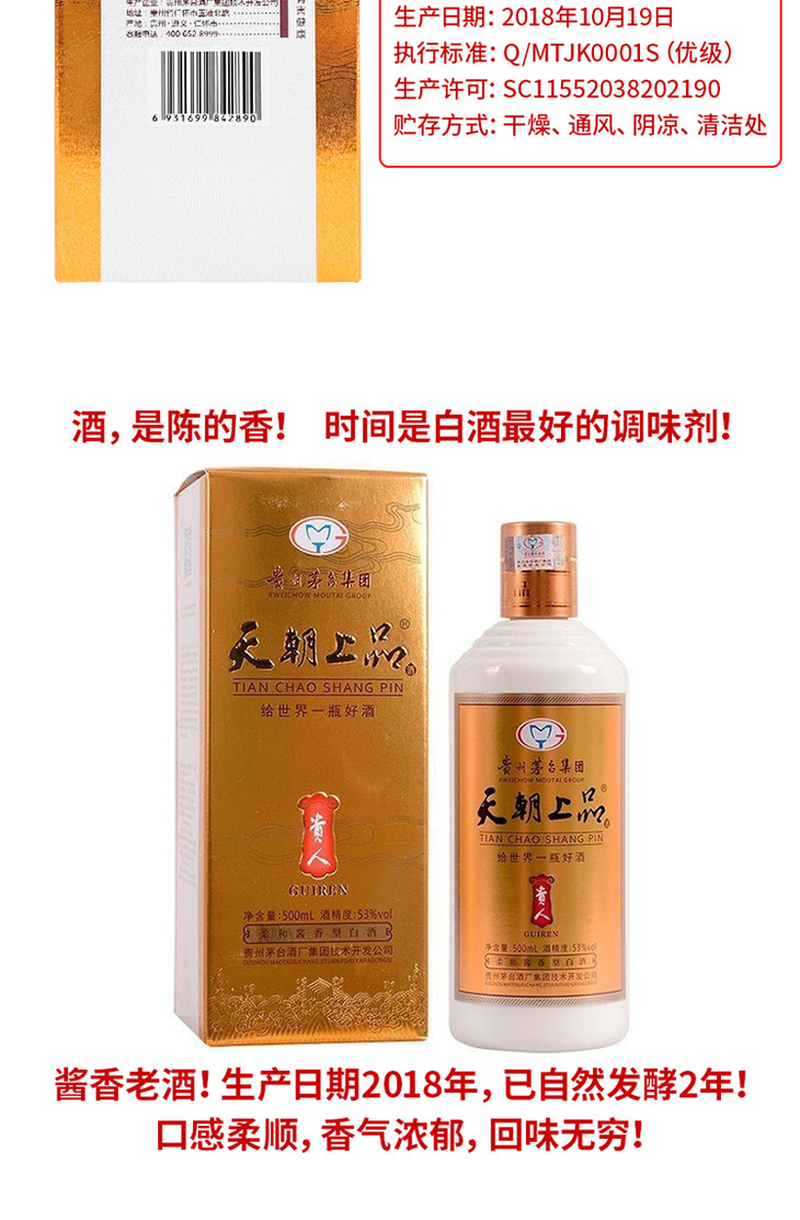 茅台天朝上品贵人酒一代 53度酱香型白酒 整箱6瓶*500ml包邮