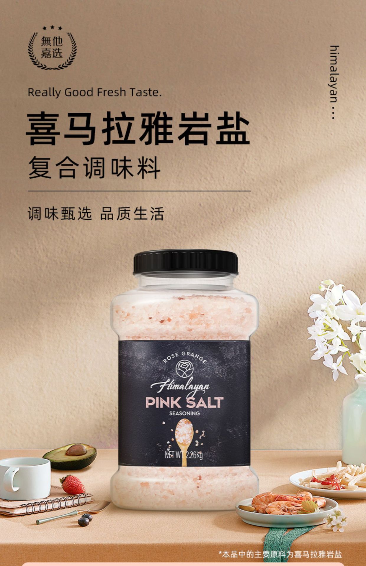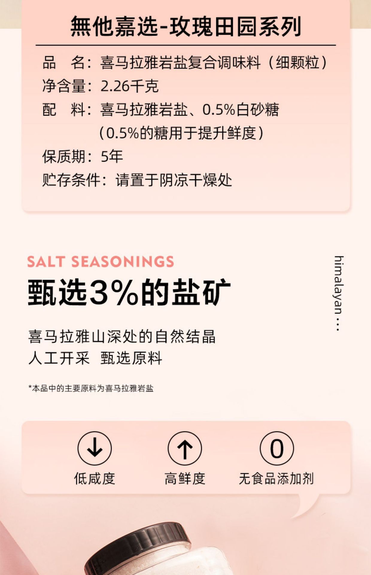 【中欧班列精选】巴基斯坦喜马拉雅玫瑰盐 原装进口喜马拉雅烤肉不加碘调料玫瑰盐 2.26kg/1瓶
