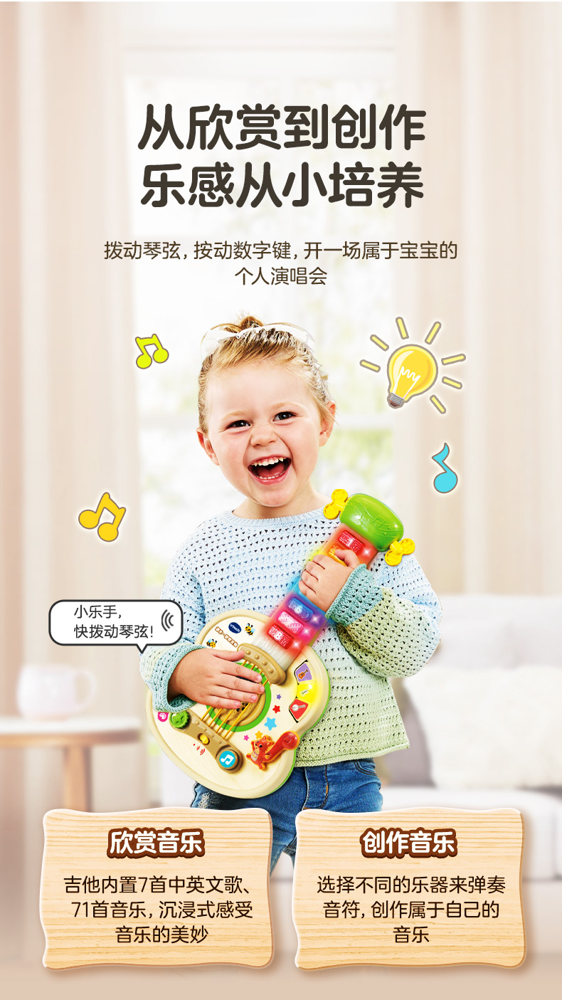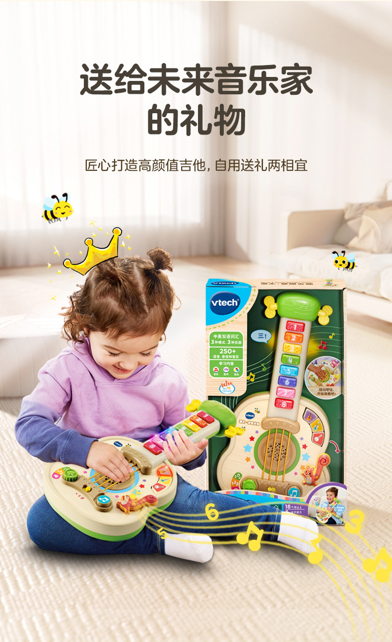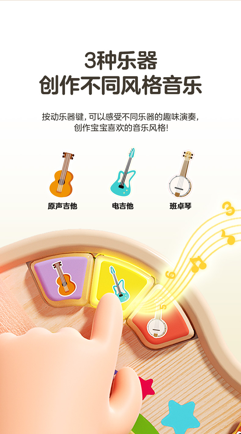 新品伟易达源木梦想吉他儿童乐器启蒙早教电子琴音乐益智玩具吉他