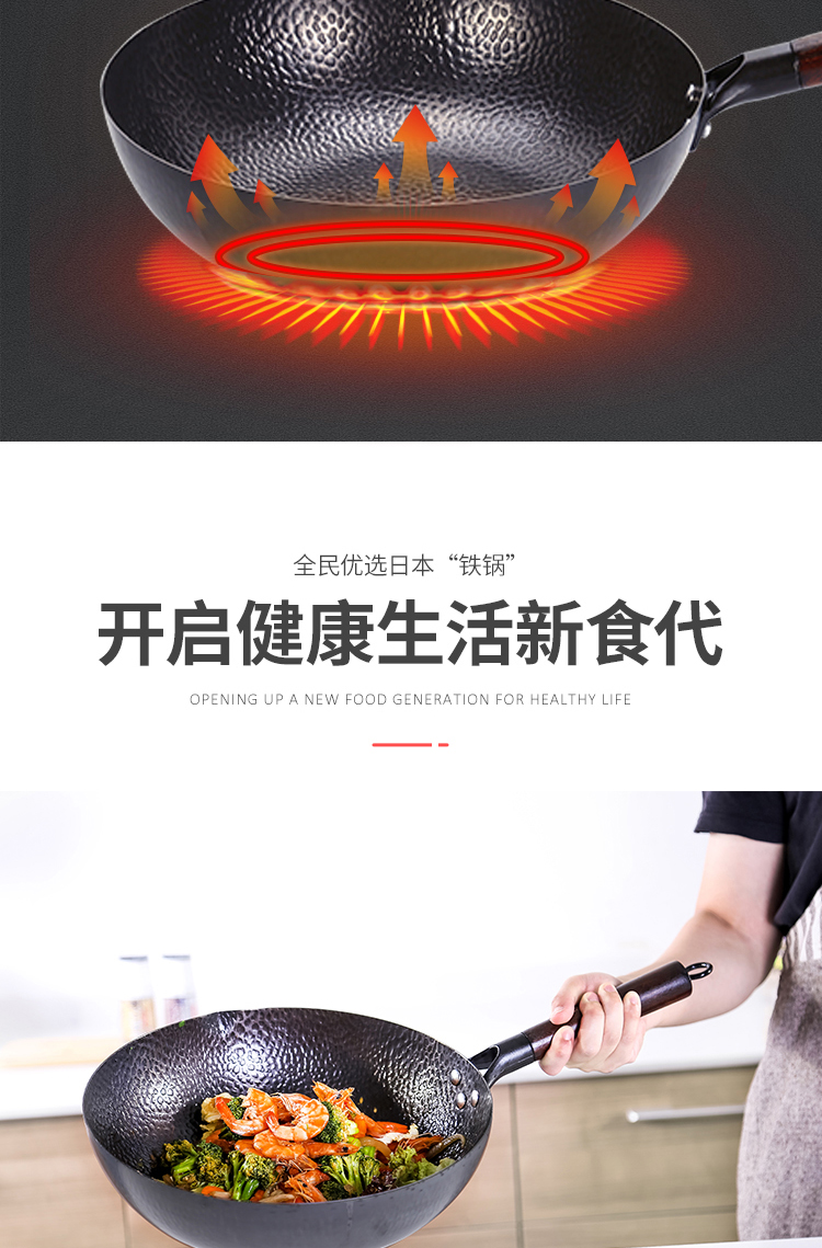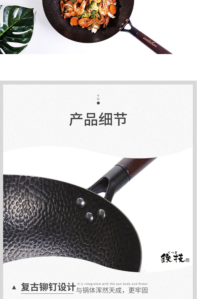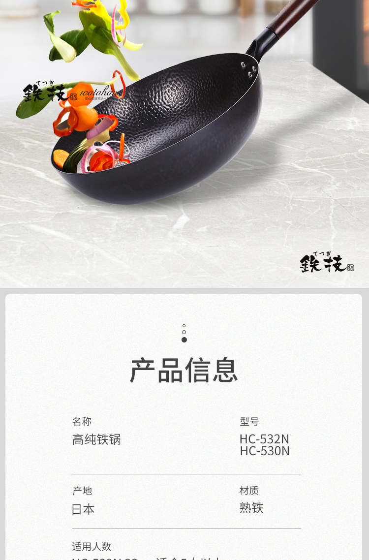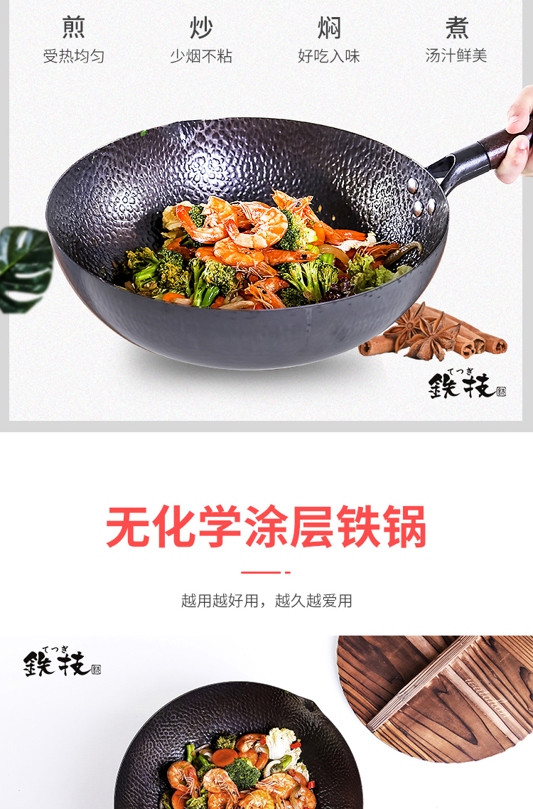 铁技Watahan 高纯铁锅30CM 32CM 炒锅 日本
