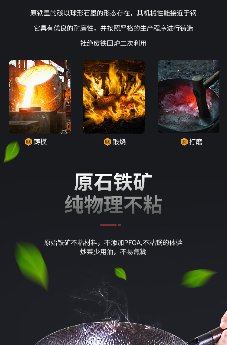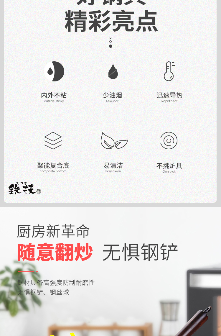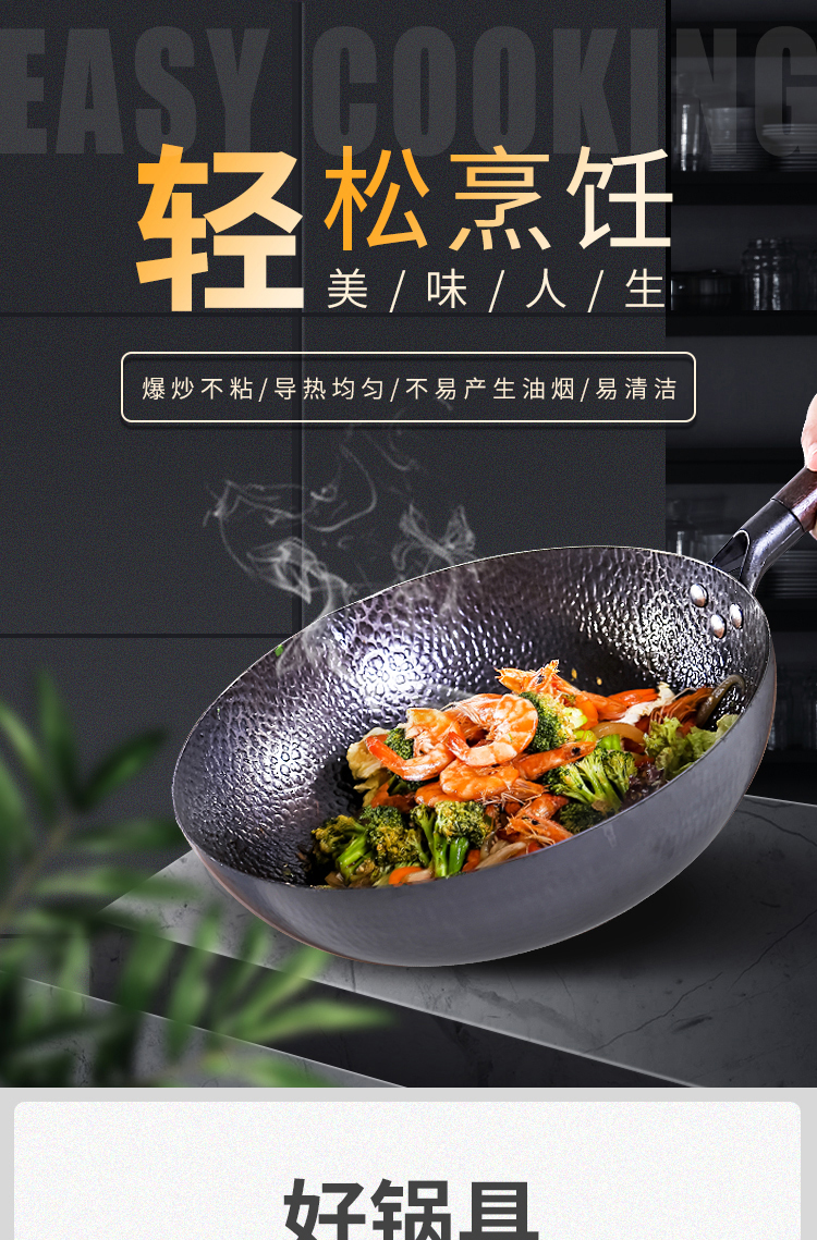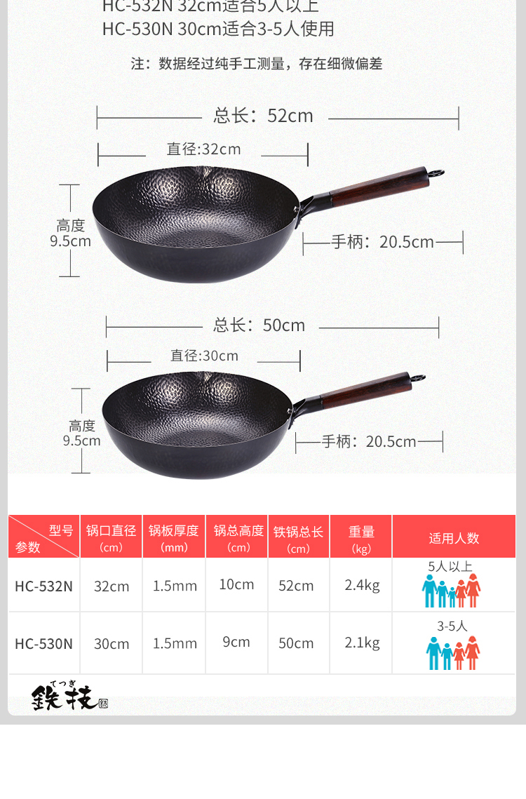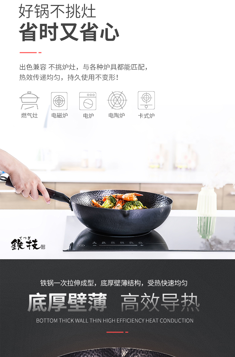铁技Watahan 高纯铁锅30CM 32CM 炒锅 日本