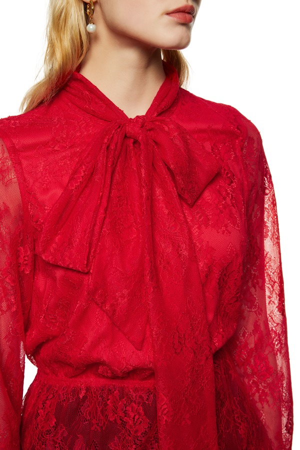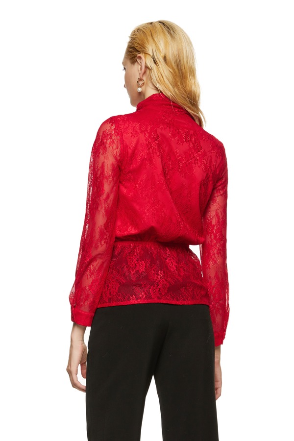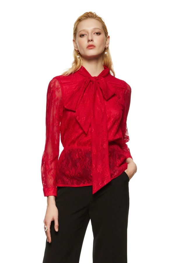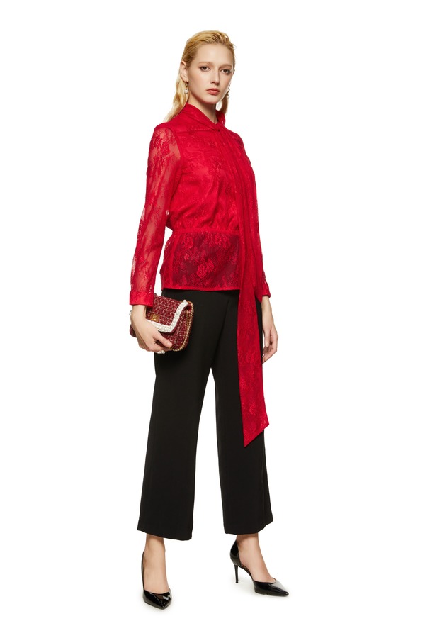 L.Fleuri 红色半透明蕾丝系带上衣 8792