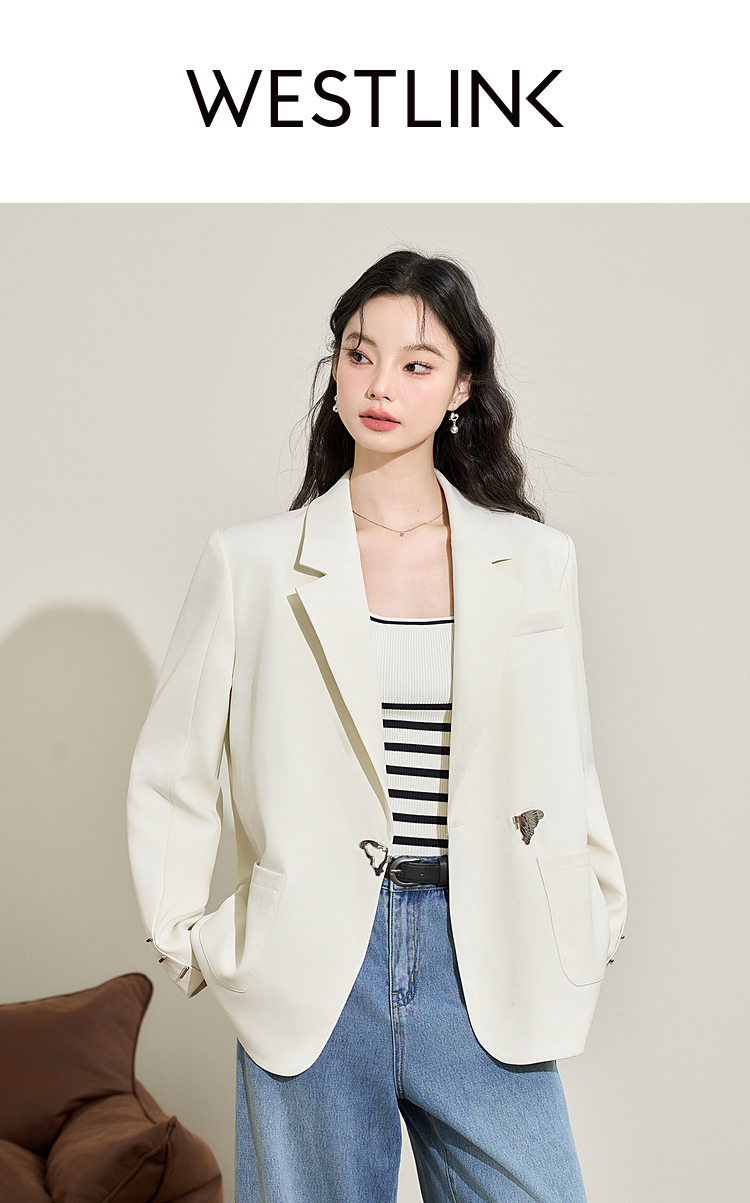 高级感通勤优雅气质蝴蝶纽扣西服女早春休闲西装外套V3342353