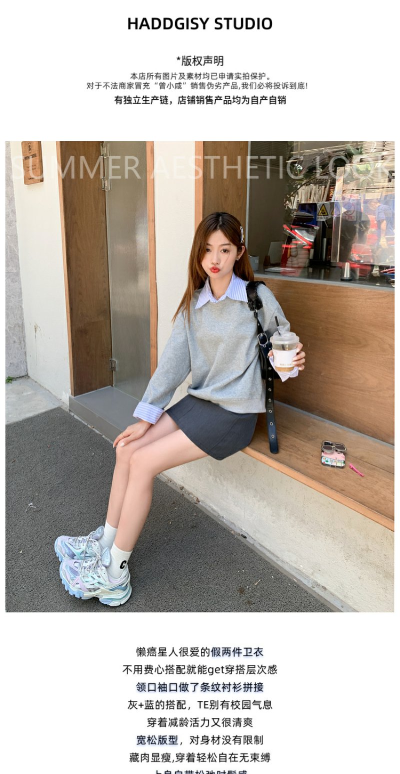 <曾小咸推荐>【简搭文学】灰色假两件卫衣
