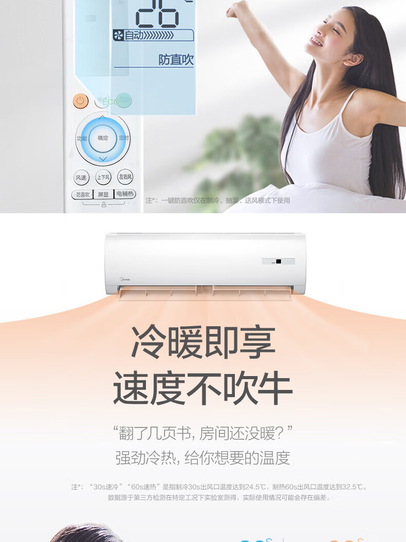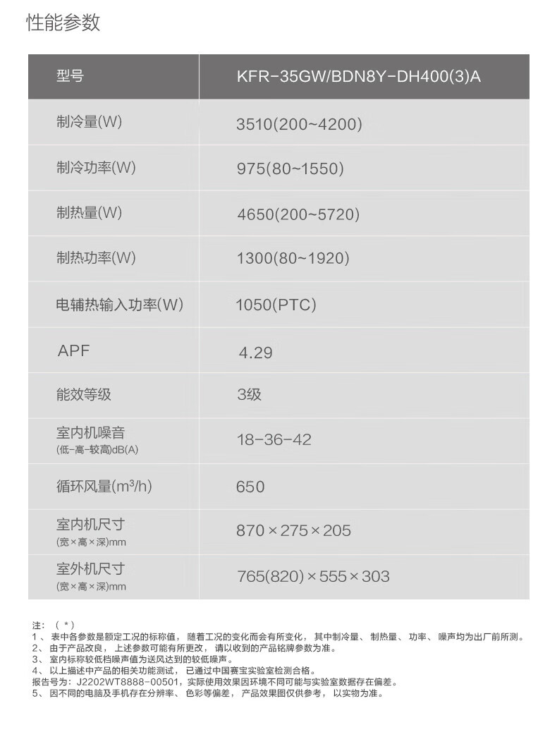 美的 1.5匹新三级变频冷暖壁挂式空调挂机KFR-35GW/BDN8Y-DH400(3)A