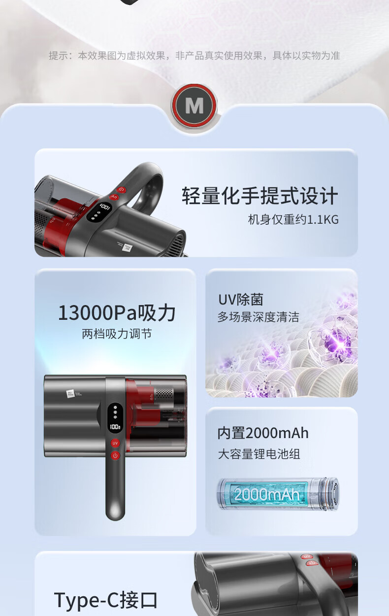 【小家电】米技生活(Miji Home)UV除螨仪家用无线便捷 MV-WP1208 HF