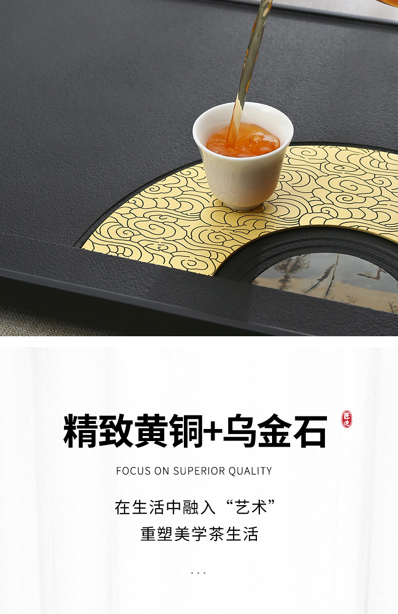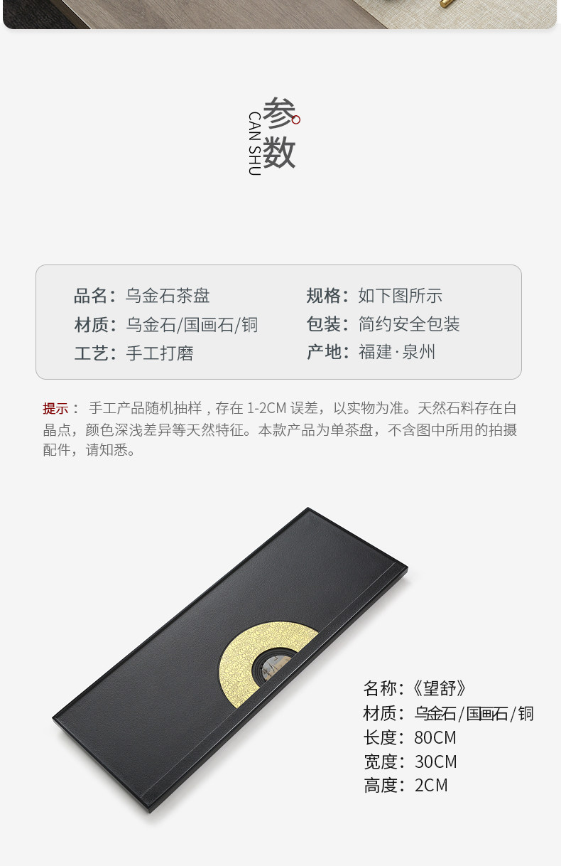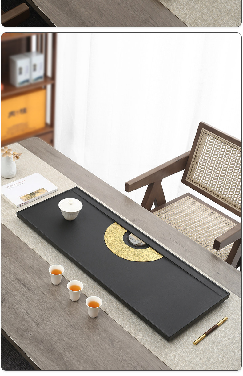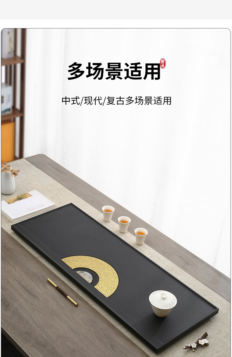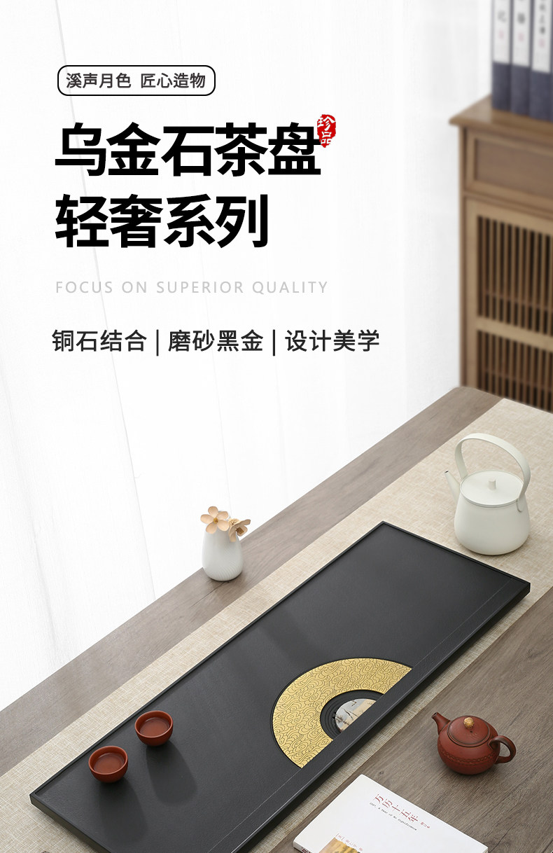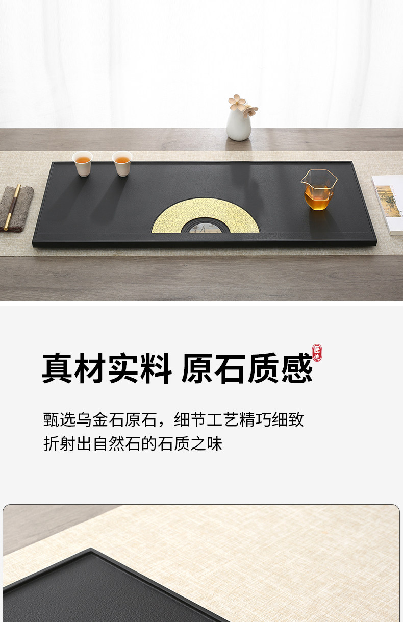 锦绣乌金石茶盘新款家用简约功夫茶具茶托盘茶台望舒墨灰石茶盘(80*30*2)