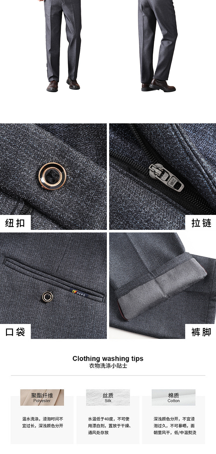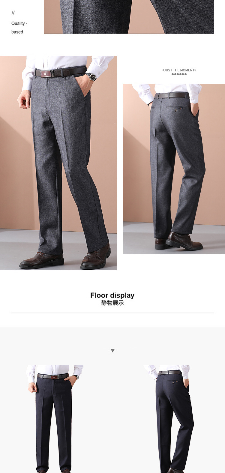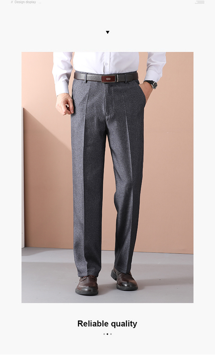 加绒加厚秋冬爸爸装中年男裤休闲裤西裤高腰长裤子男士宽松中老年