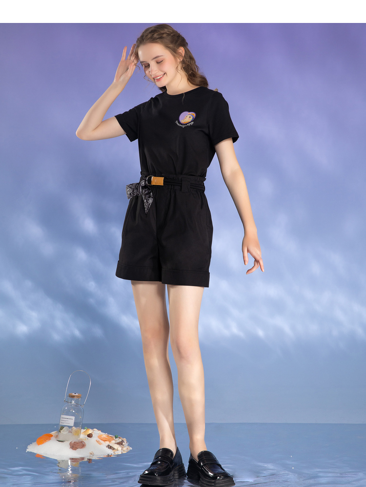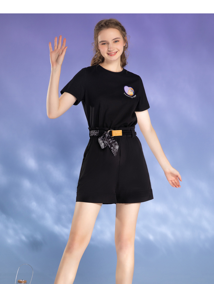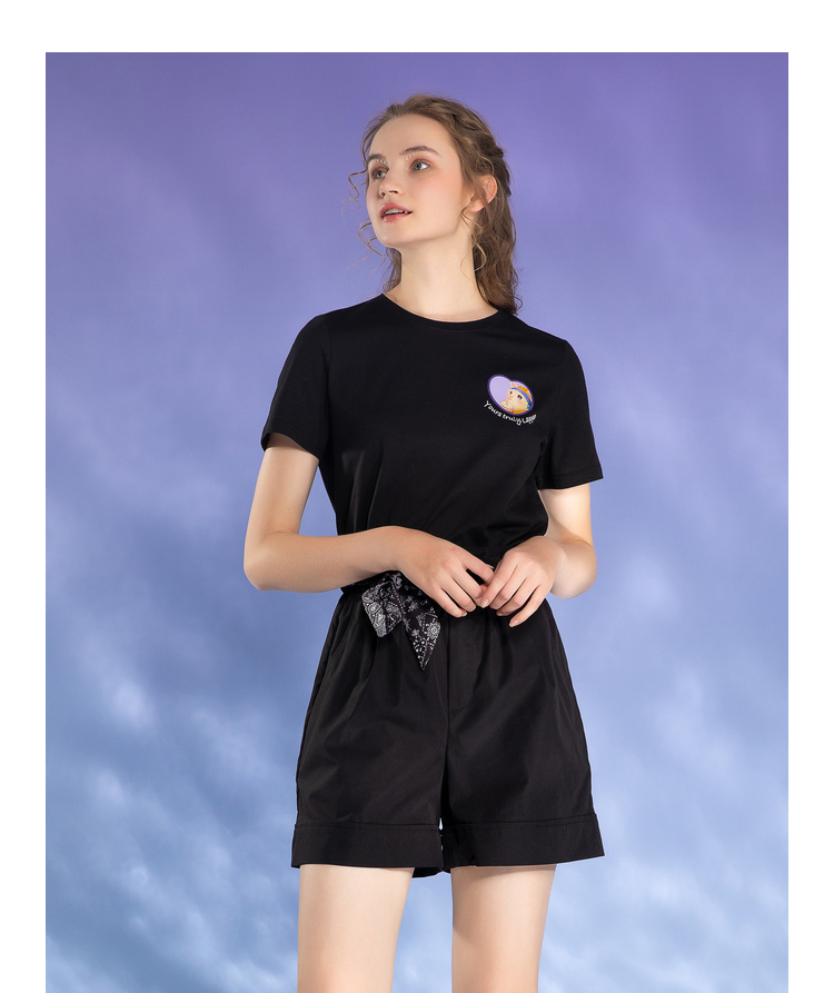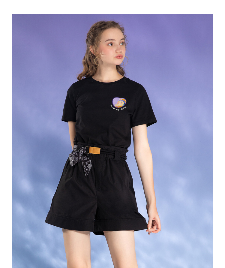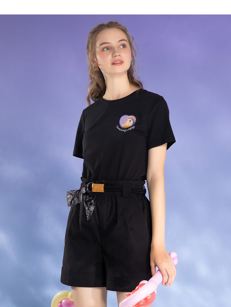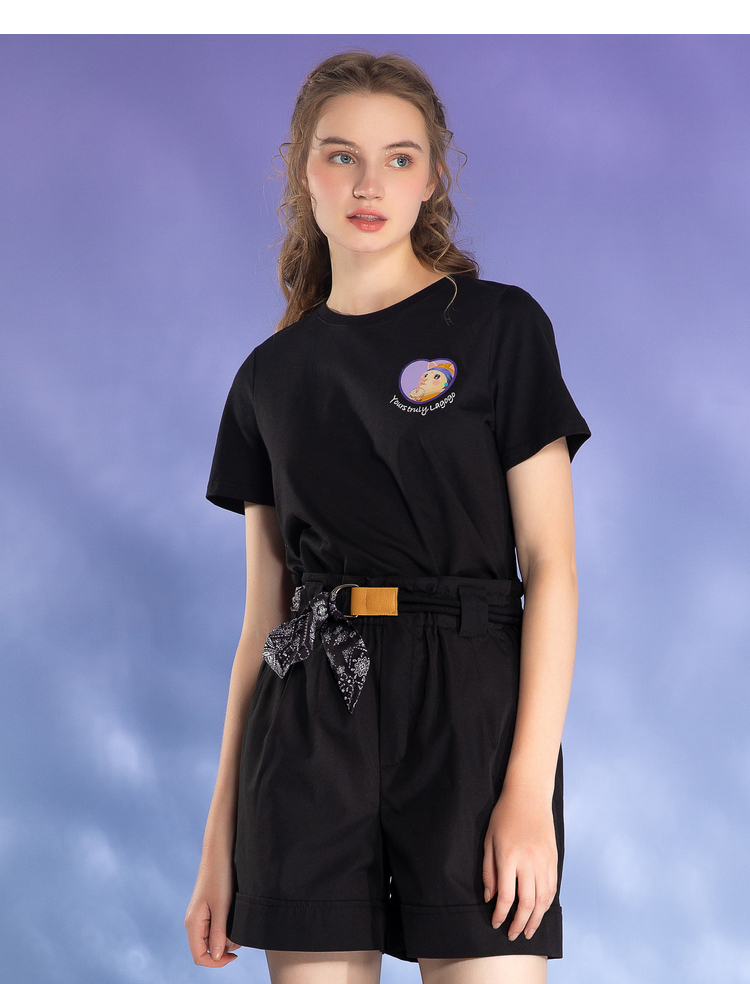 Lagogo拉谷谷2022夏季新款卡通印花圆领黑色T恤LATT313A09