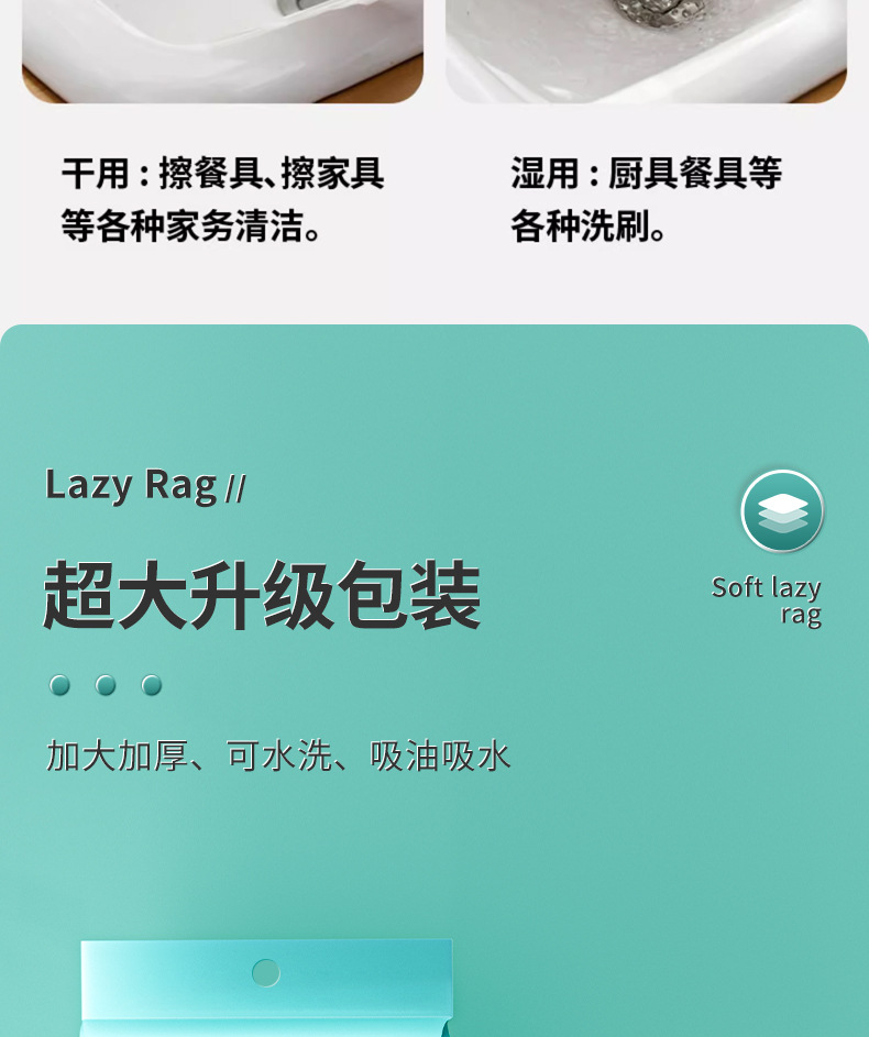 「抽取壁挂式!干湿两用」一次性懒人抹布 厨房用品干湿两用加厚吸水吸油清洁工具