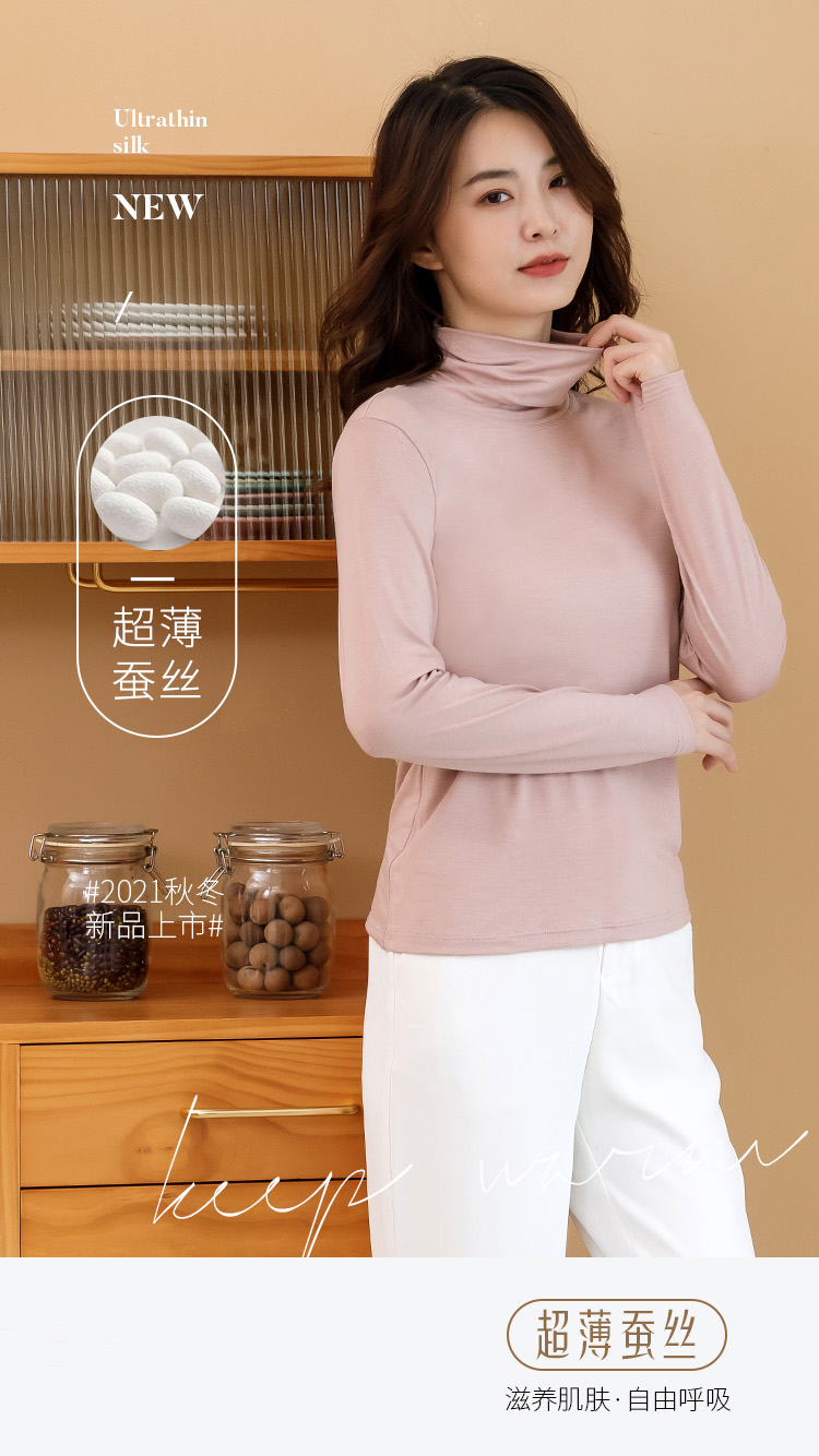 【 99元/2件】【女士超薄蚕丝高领上衣】女士打底衫高领上衣蚕丝【FF21801】