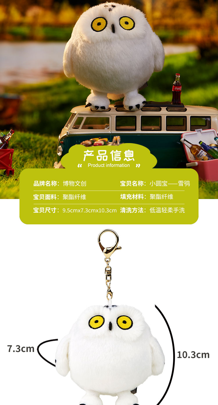博物文创 原创 小圆宝 雪鸮 毛绒书包挂件 玩偶 呆萌可爱
