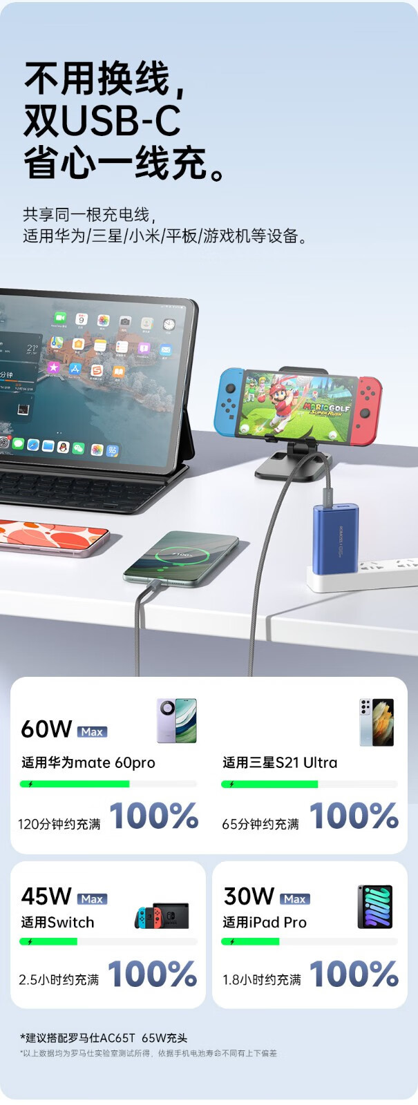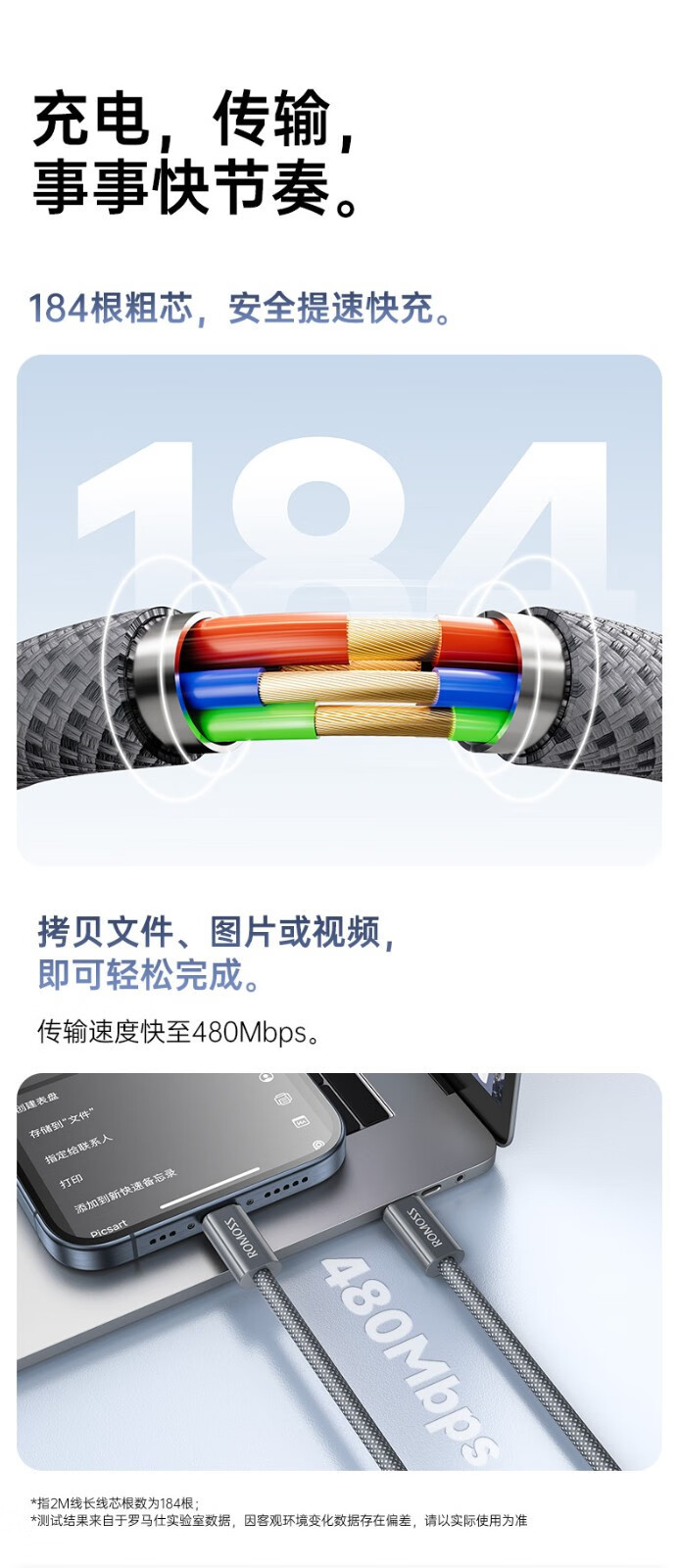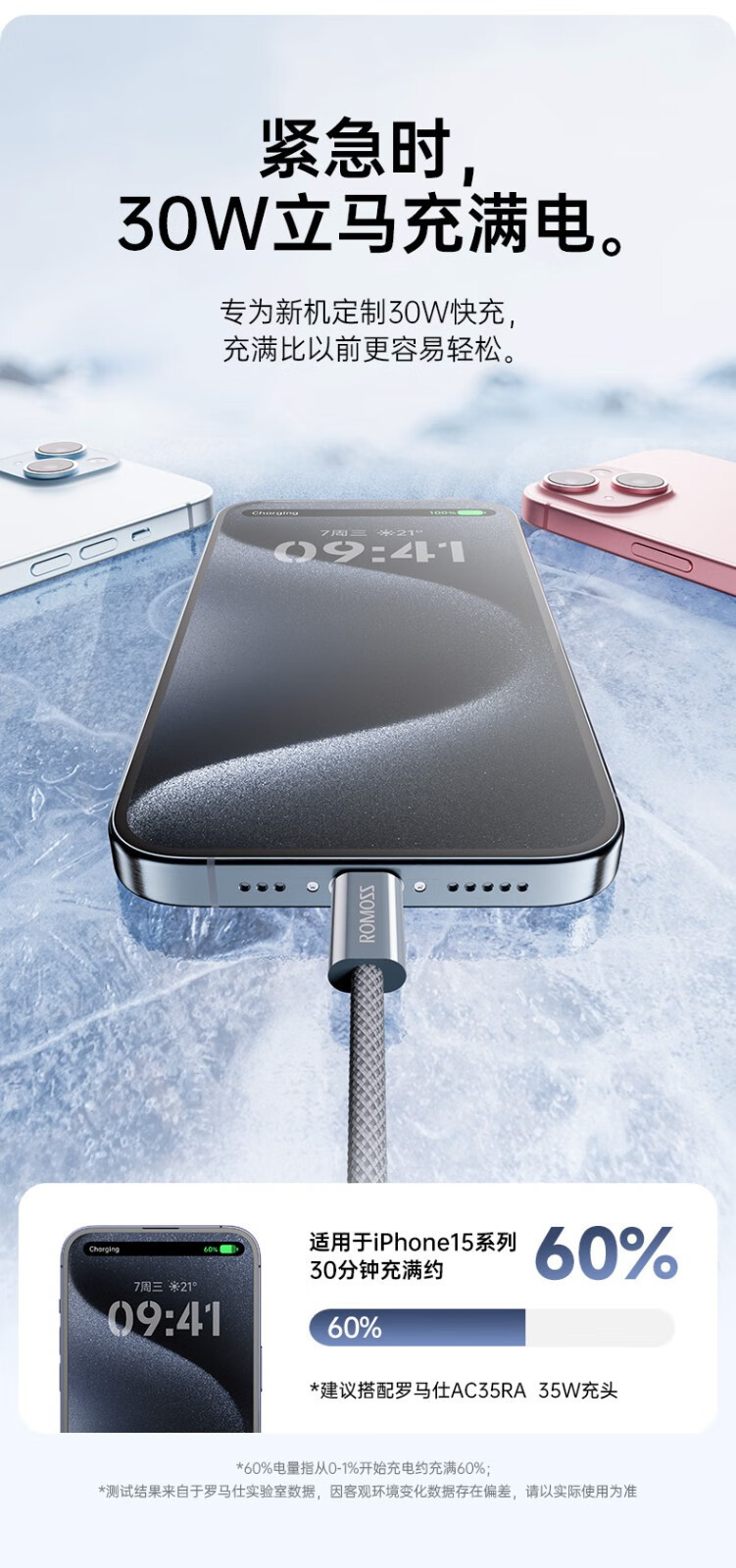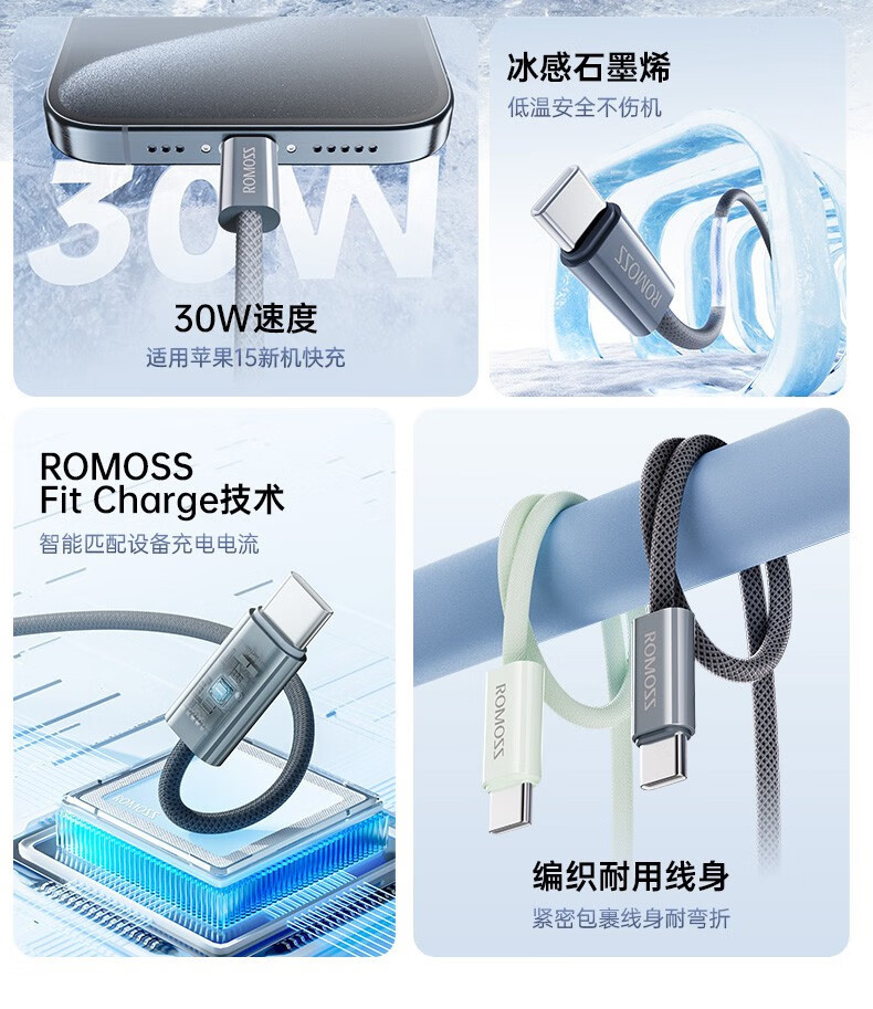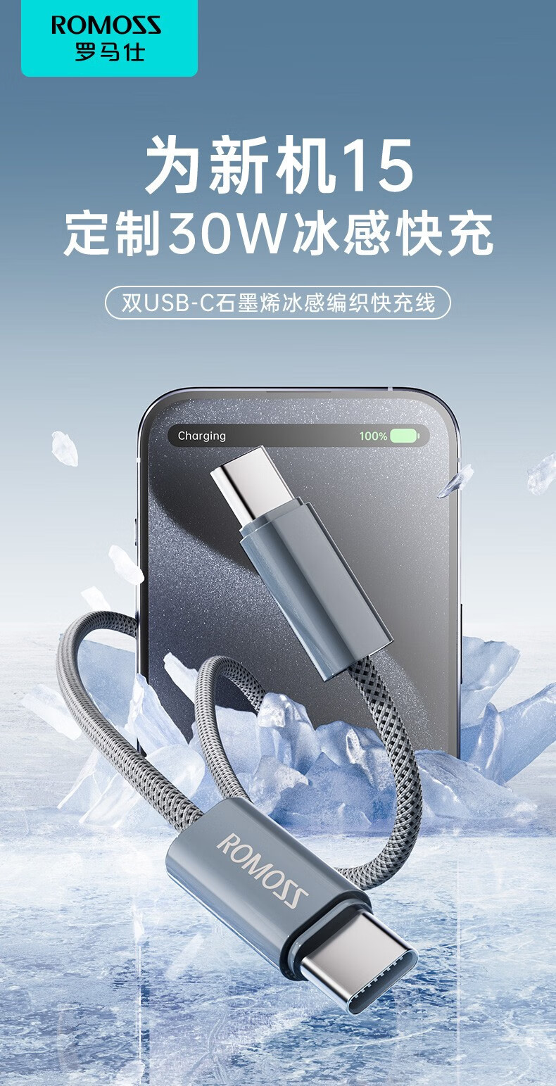 「30W快充线」罗马充电线Type-c数据线 PD30W快充适用苹果1516全系手机数码配件