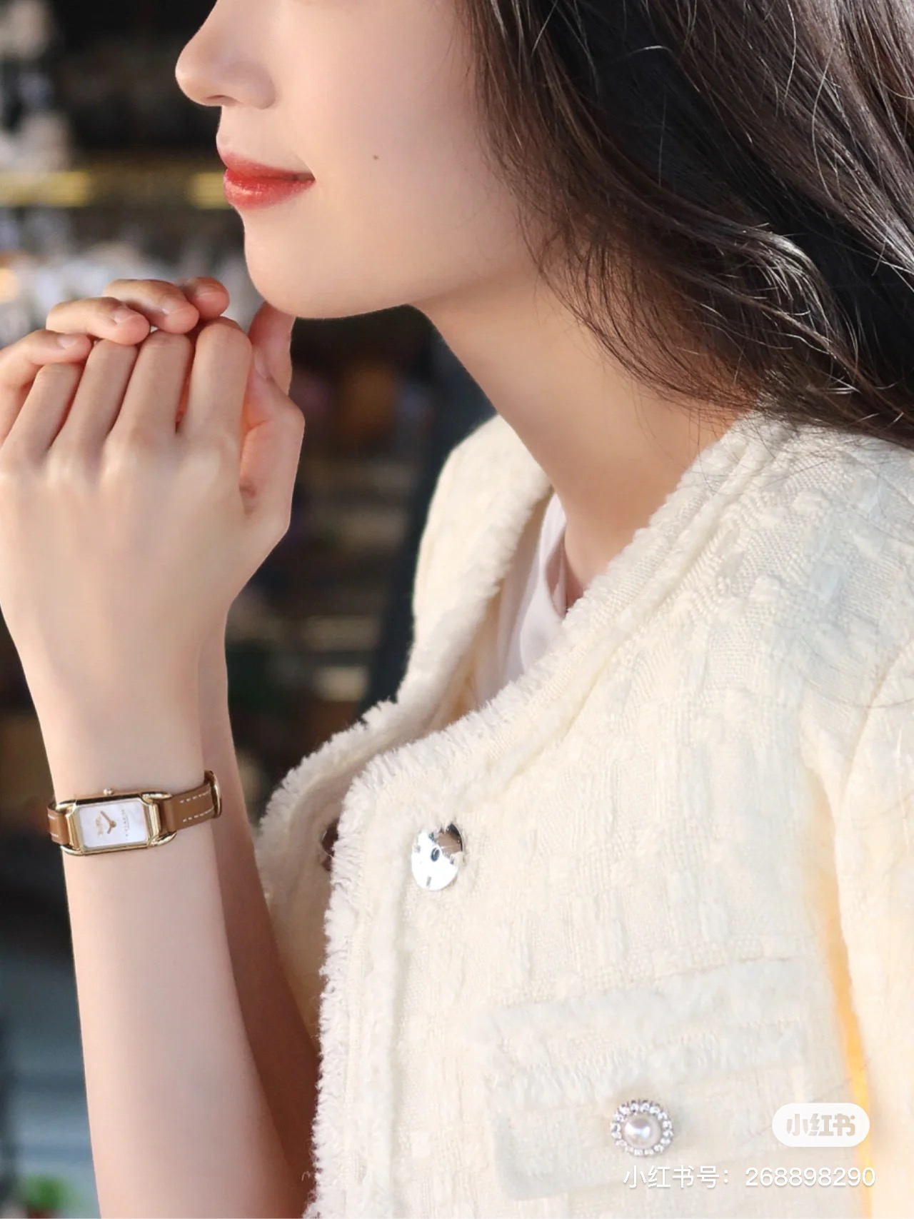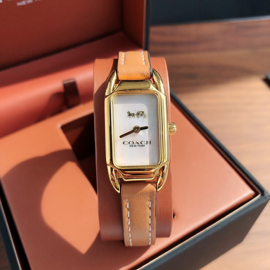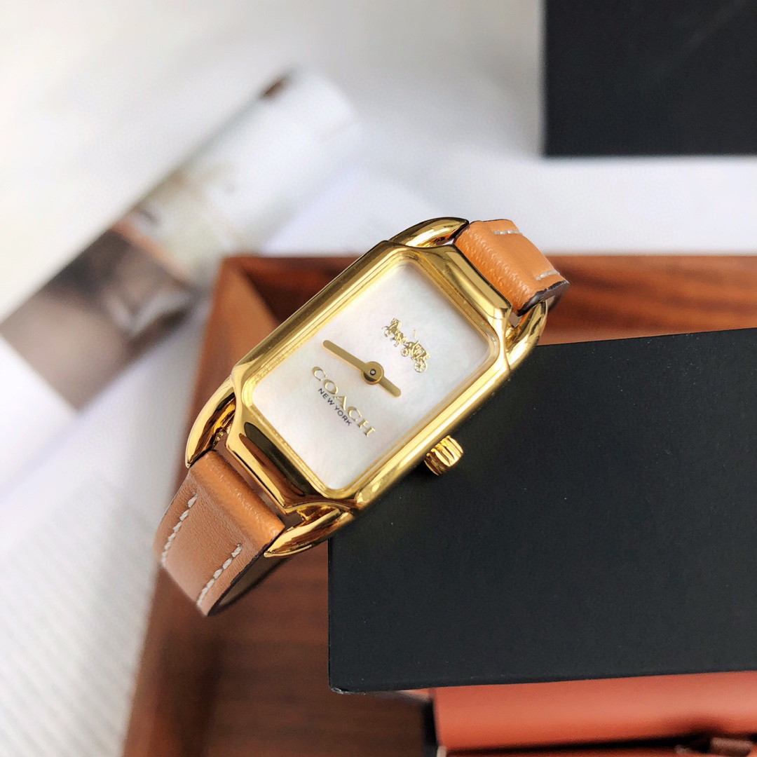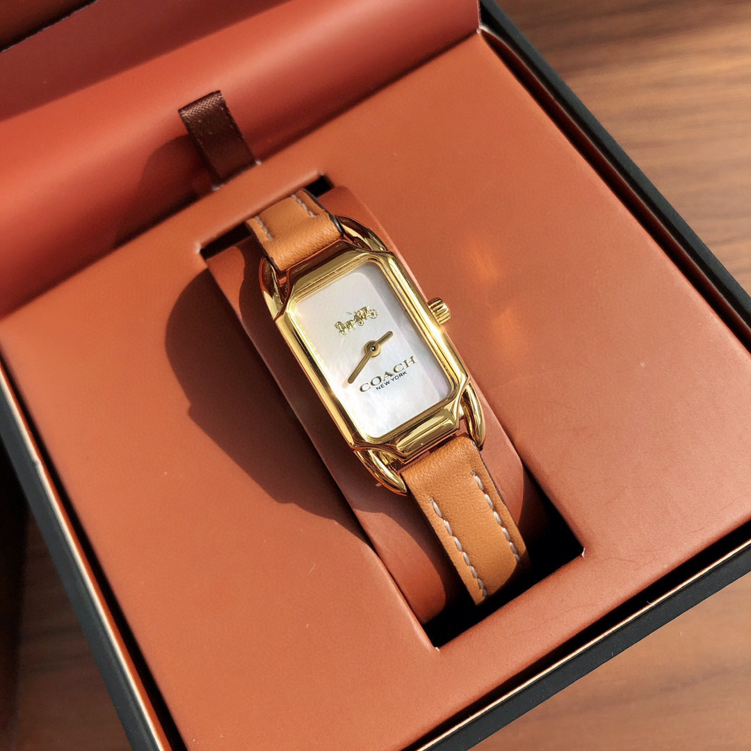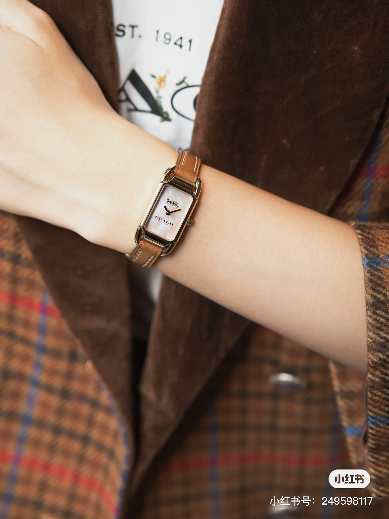 COACH/蔻驰,全网最火爆的小方芯来了,CADIE系列小方芯小女表。希林娜依·高同款,2022年春夏全新系列延续一贯的优雅气质,诠释摩登时尚美学的态度。尺寸:17mm×28.5.mm,全方位展现优雅气质。搭配经典小牛皮表带佩戴舒适,赋予佩戴者更多复古风格。展迷人光彩。可谓火爆全场。把女性的优雅精致,迷人气质,展现得淋漓尽致。