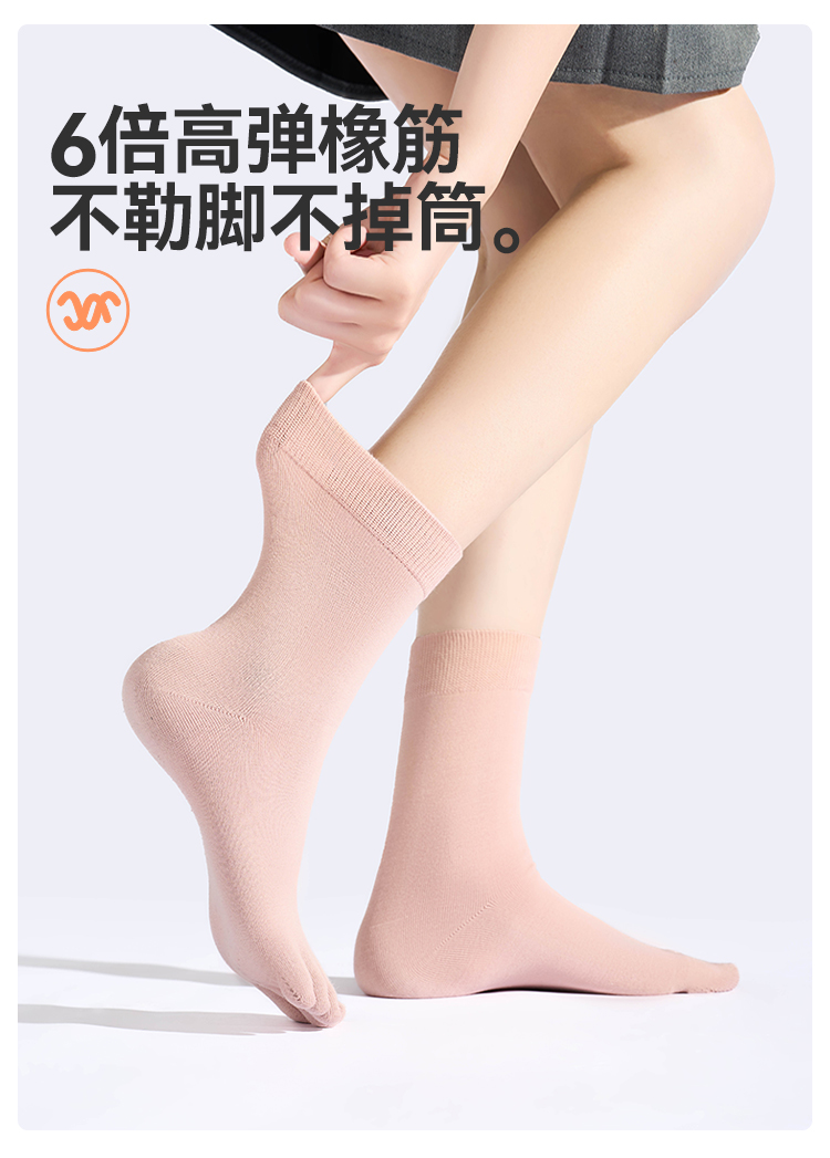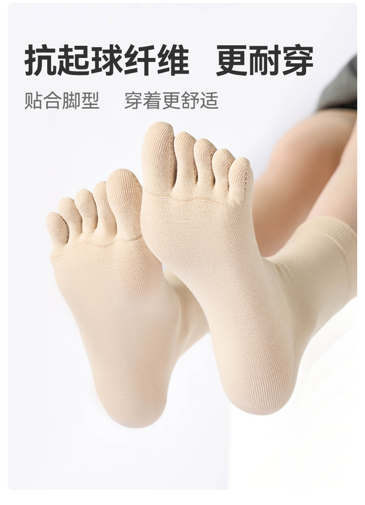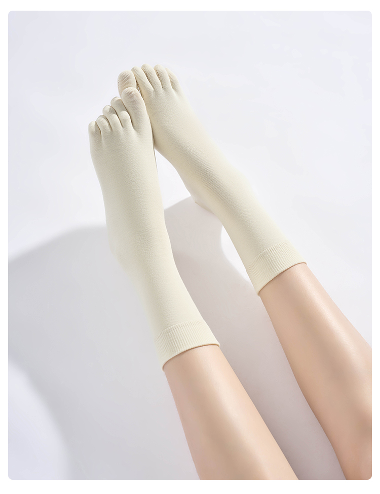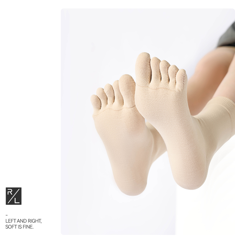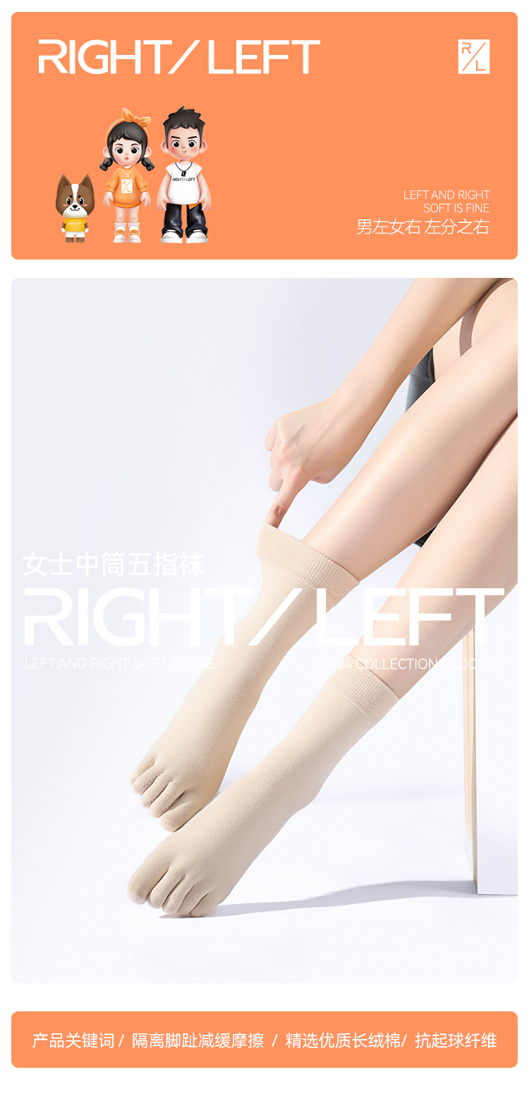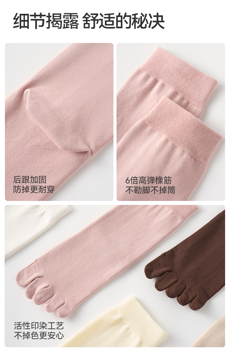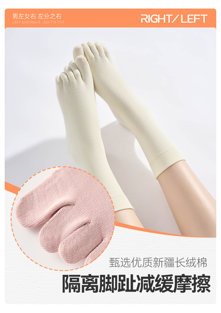 左分之右五指袜子女春夏纯棉10A抗菌防臭长筒袜分趾防滑中筒袜子