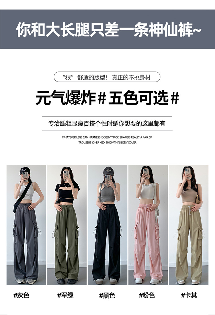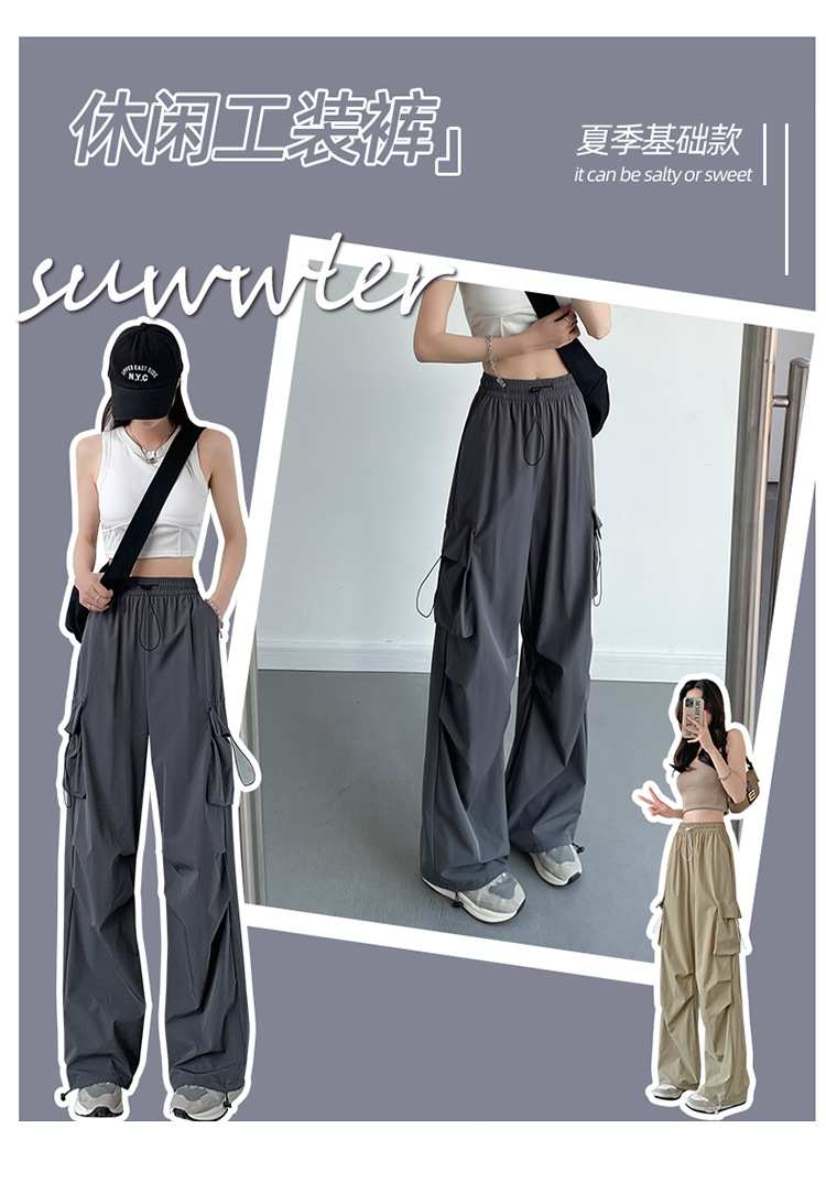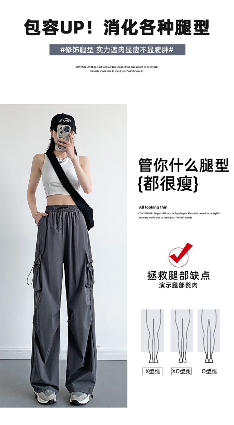 速干工装裤女裤子2024新款冲锋小个子阔腿夏季冰丝薄款登山运动裤