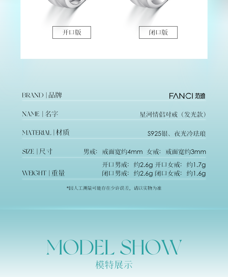 【发光款 星河情侣开口对戒】范琦光年系列 下单即赠精美礼盒+顺丰空运+运费险